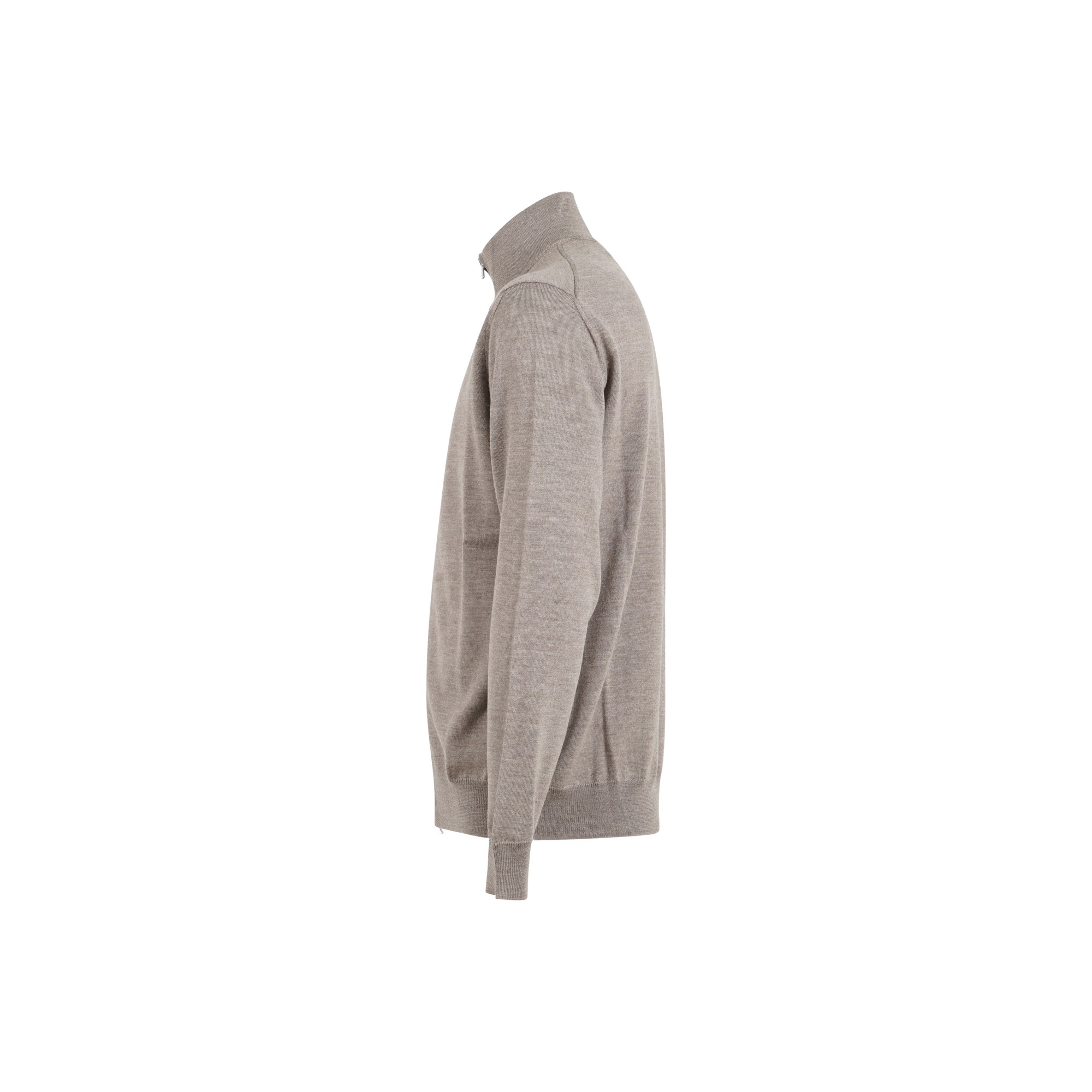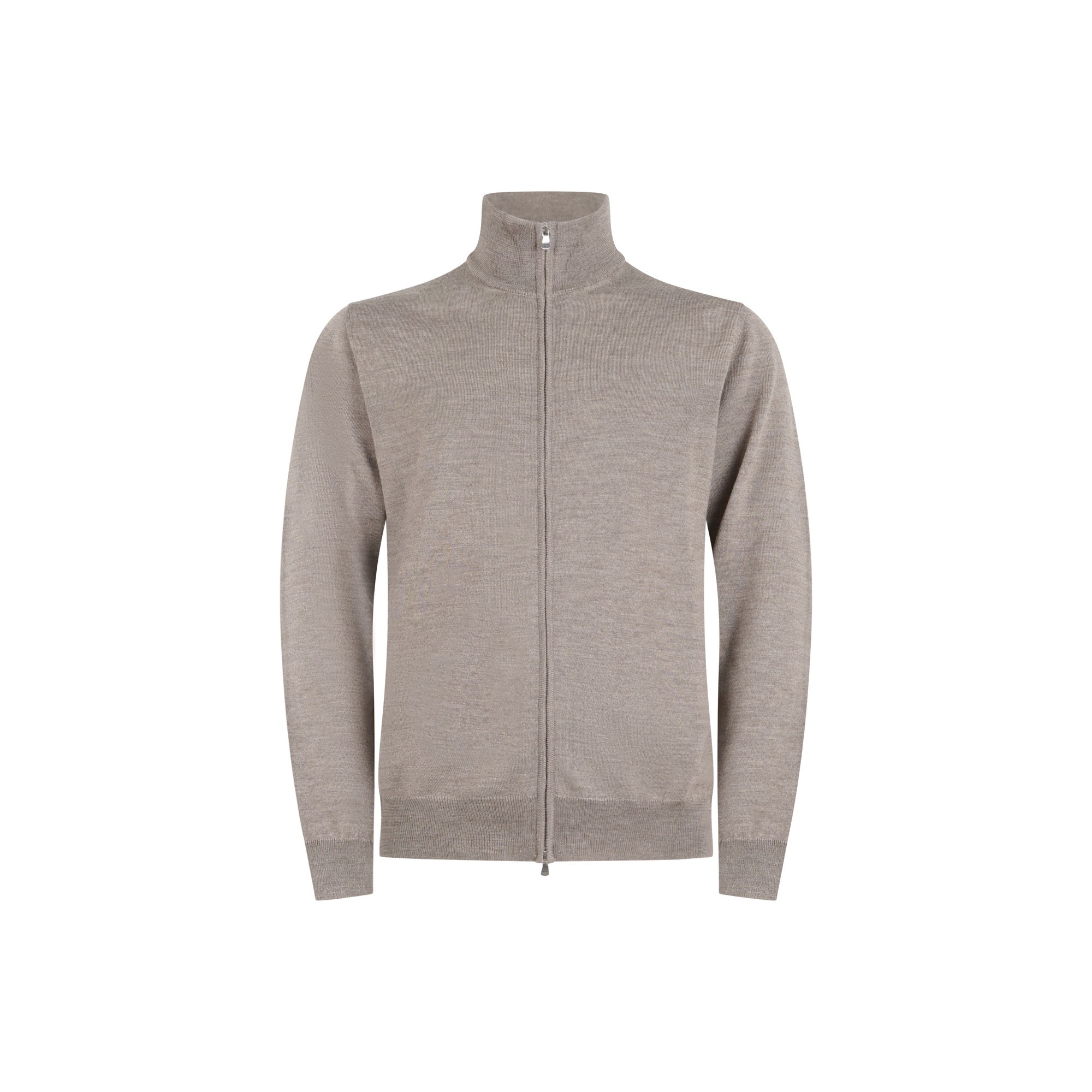 +39 Masq - Cardigan beige full zip in lana merino extrafine per uomo |