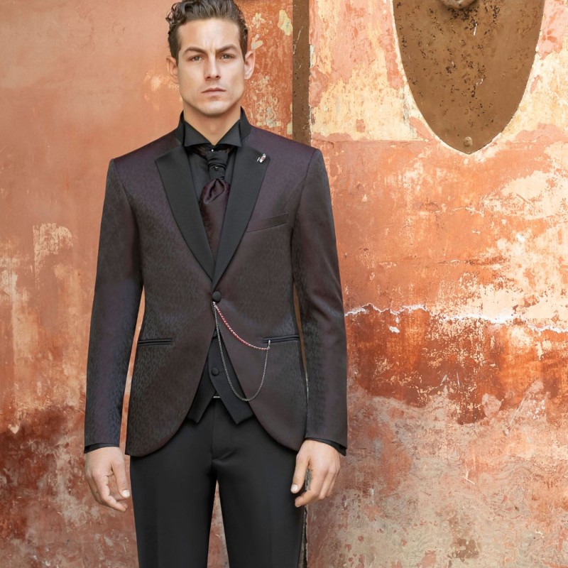 Abito smoking monopetto bordeaux coreano