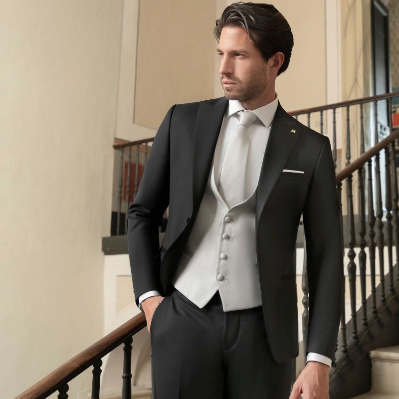 Angelo Toma - Abito smoking monopetto nero con rever a lancia per uomo |