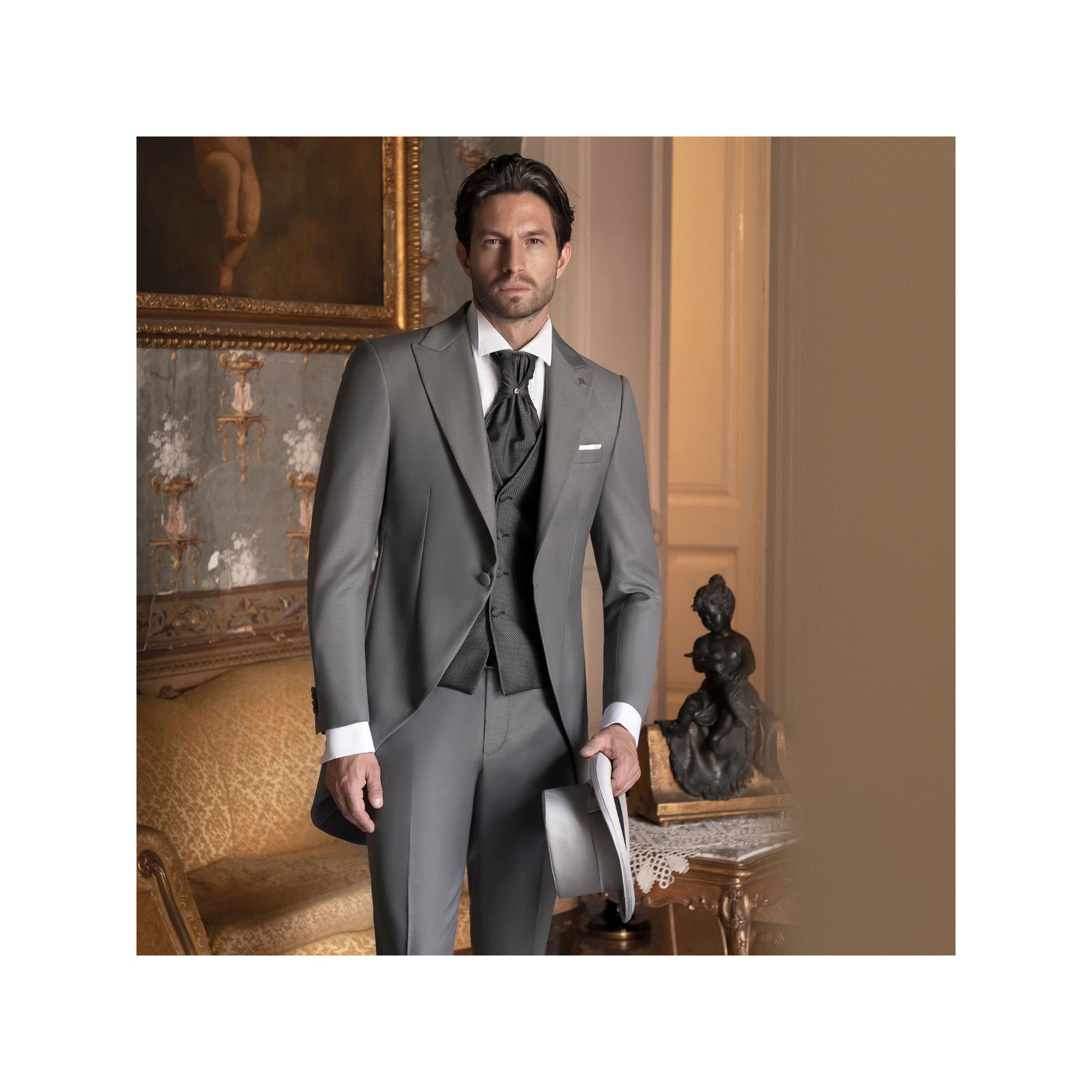 Angelo Toma - Abito tight monopetto grigio con rever a lancia per uomo |
