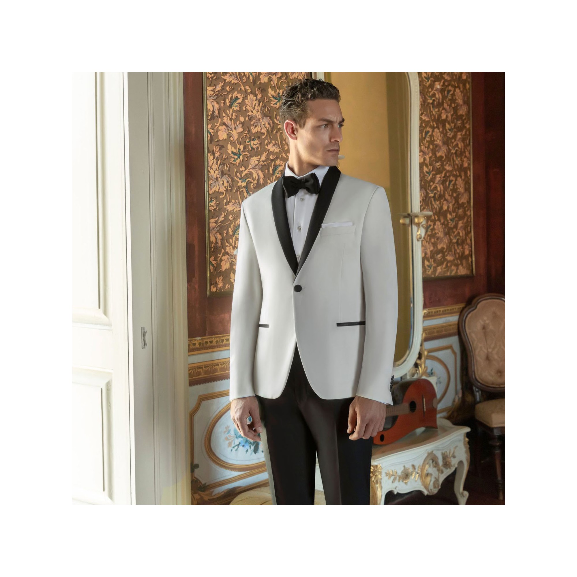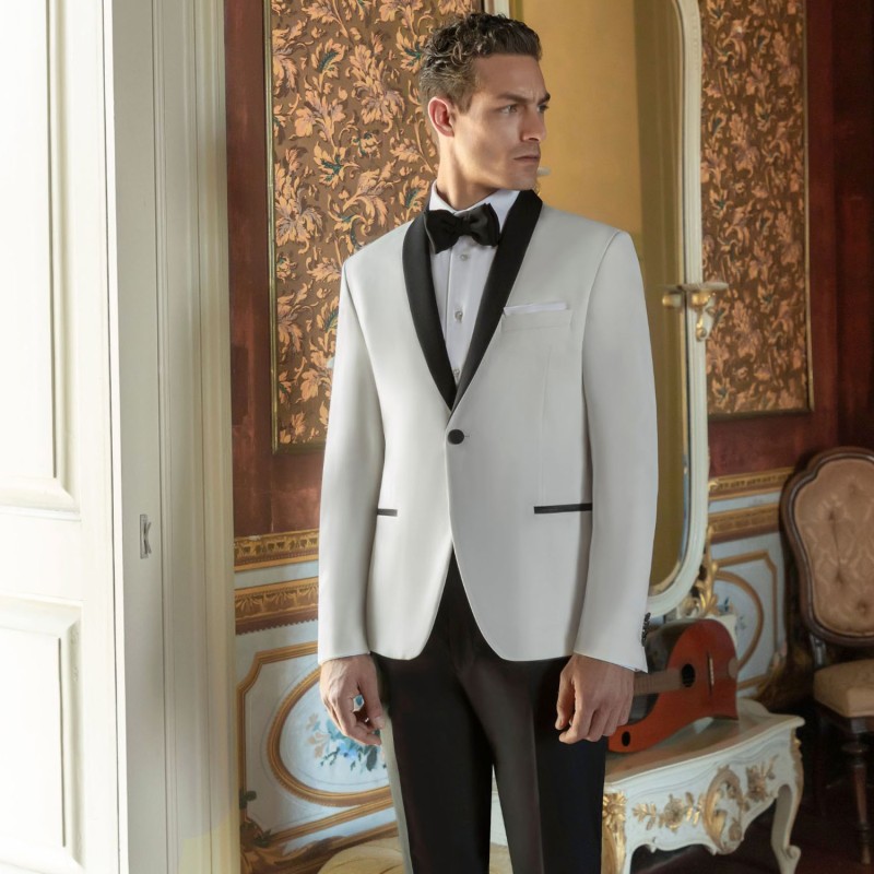 Angelo Toma - Abito smoking monopetto bianco con rever sciallato per uomo |