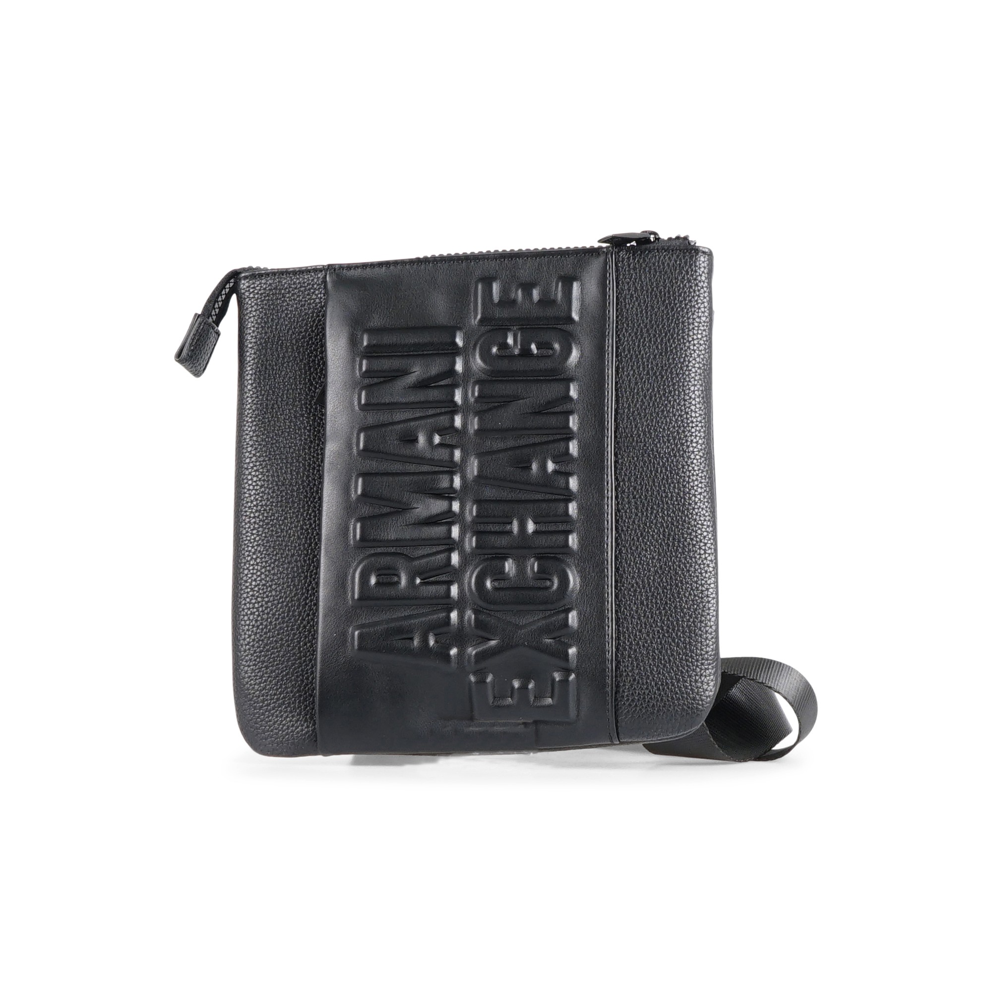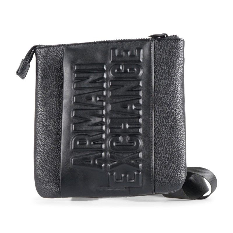 Armani Exchange - Borsa a tracolla nera con logo inciso sul fronte per uomo |