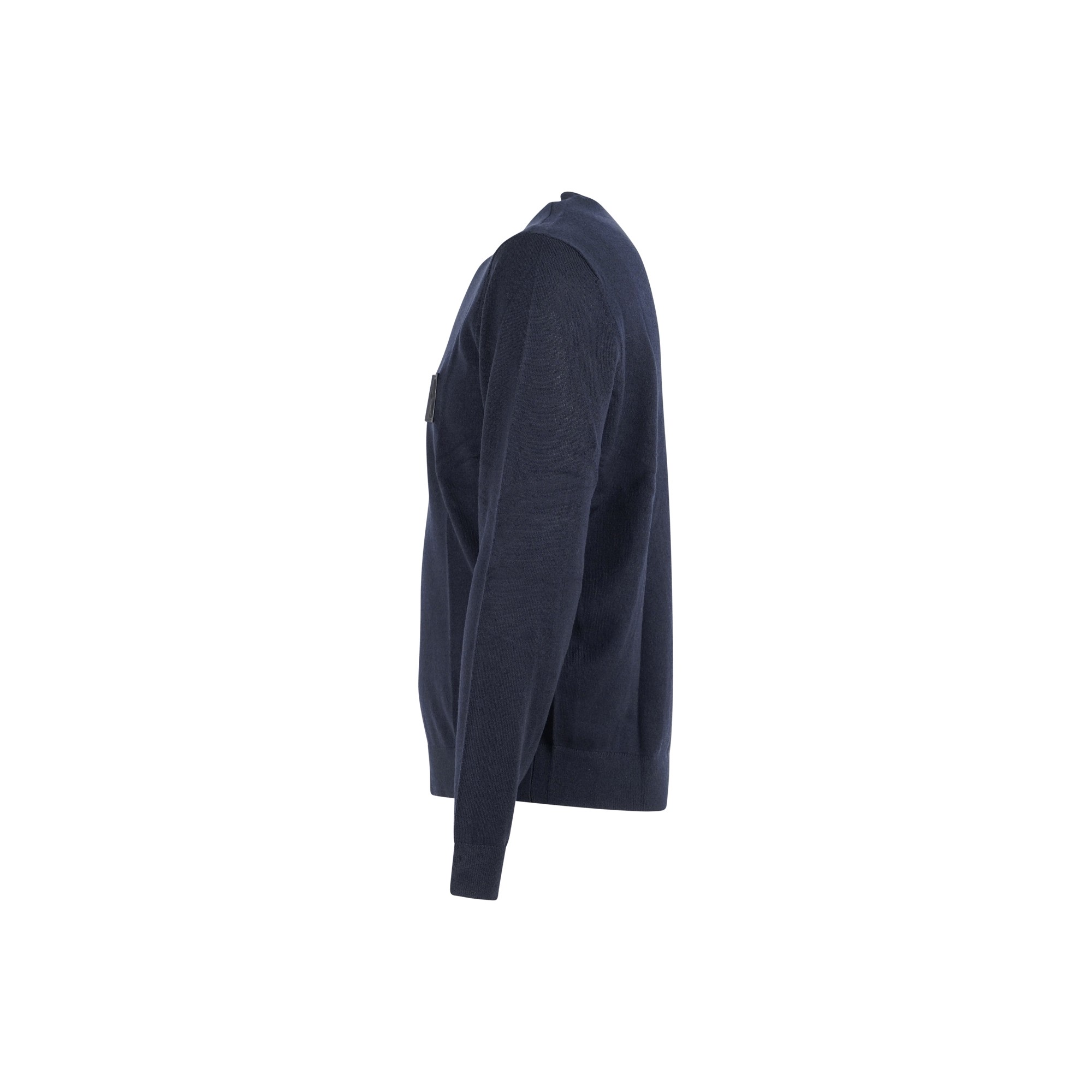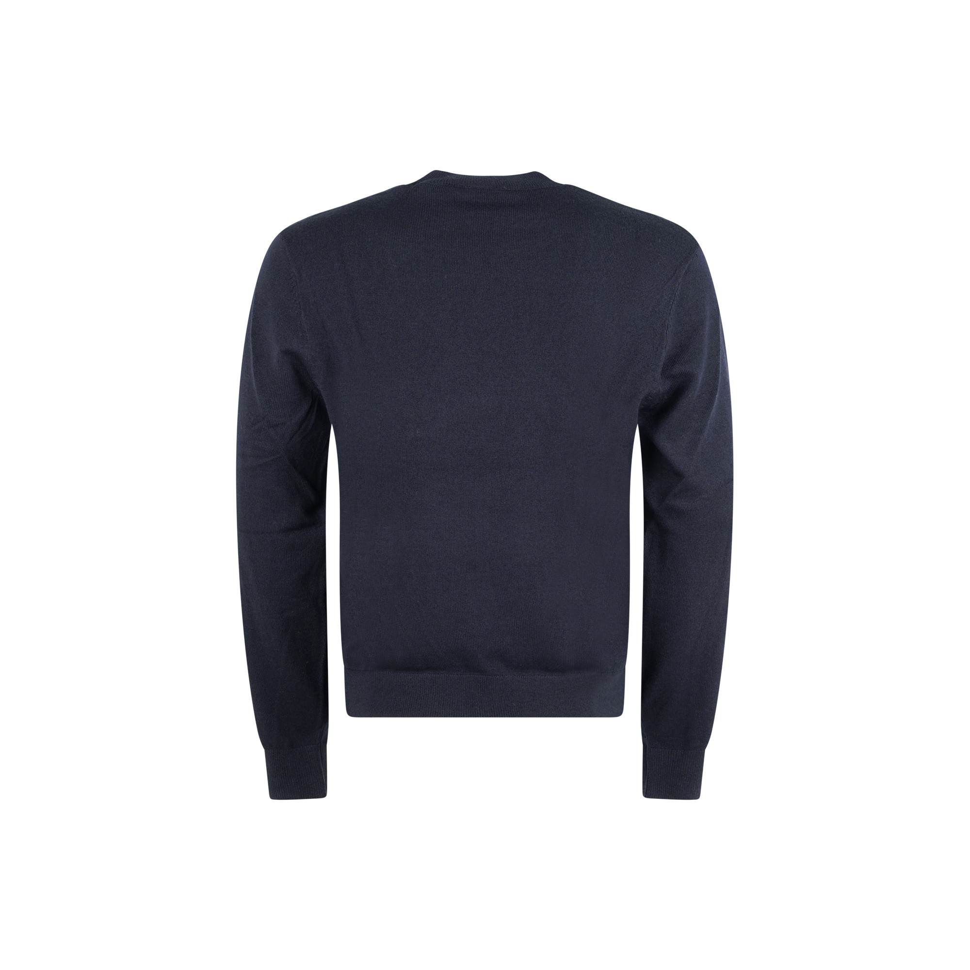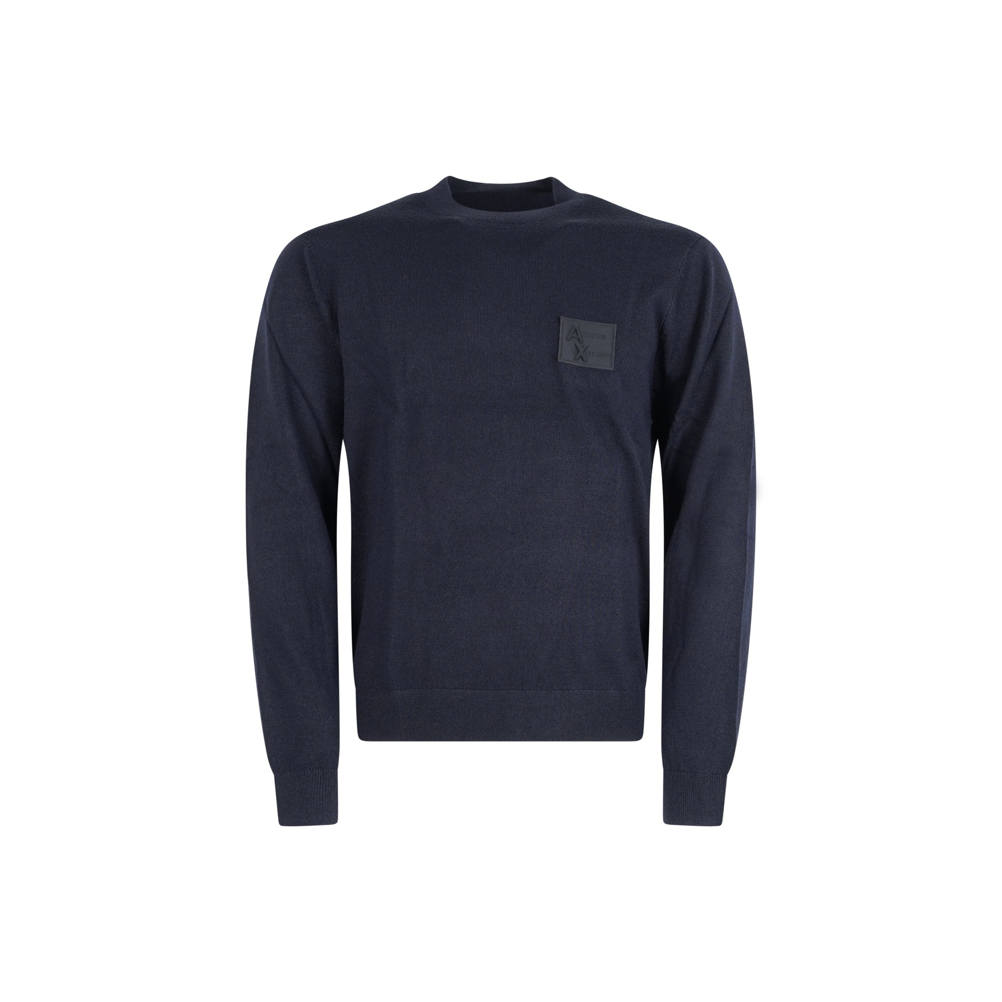 Armani Exchange - Maglione blu girocollo in un mix di filati con patch logo per