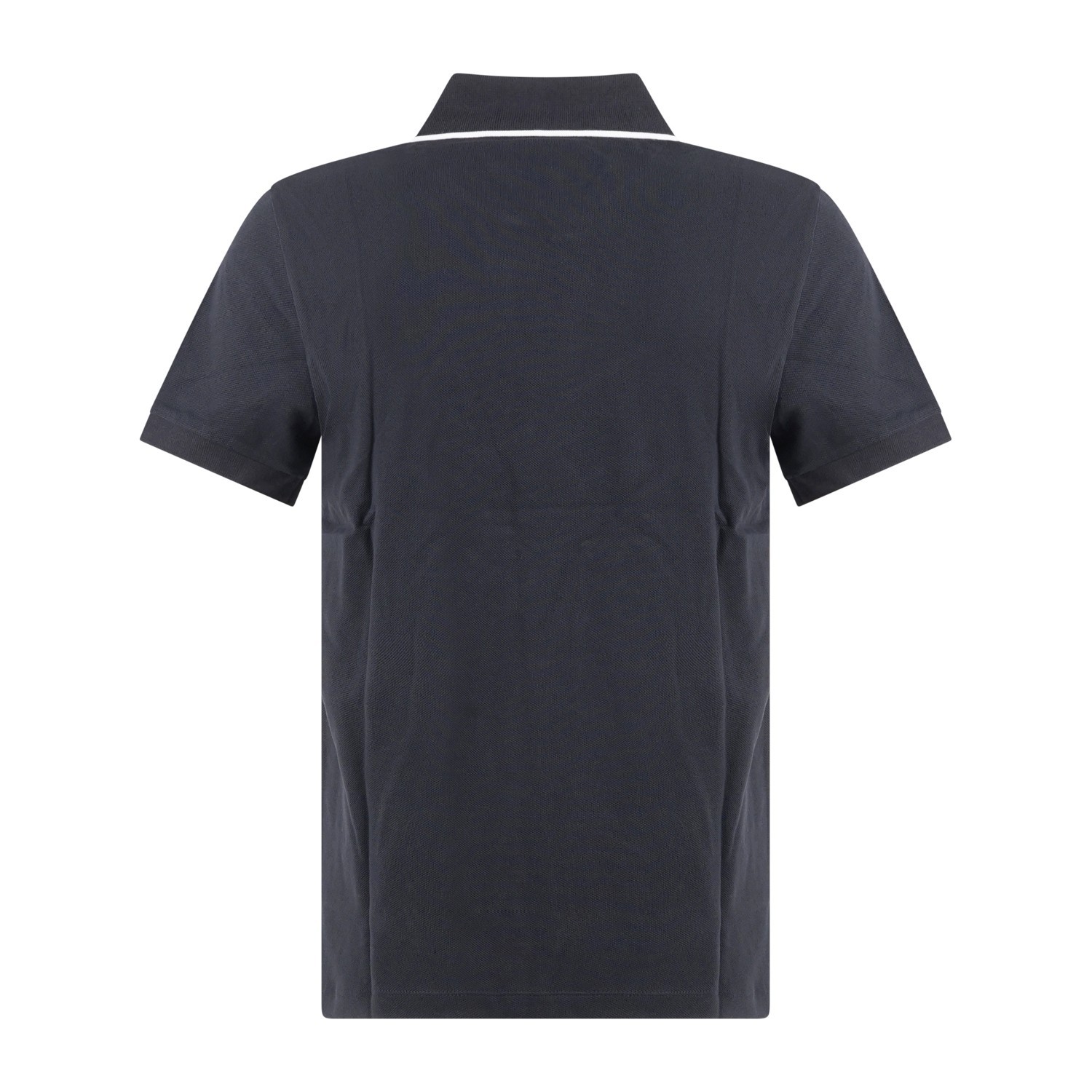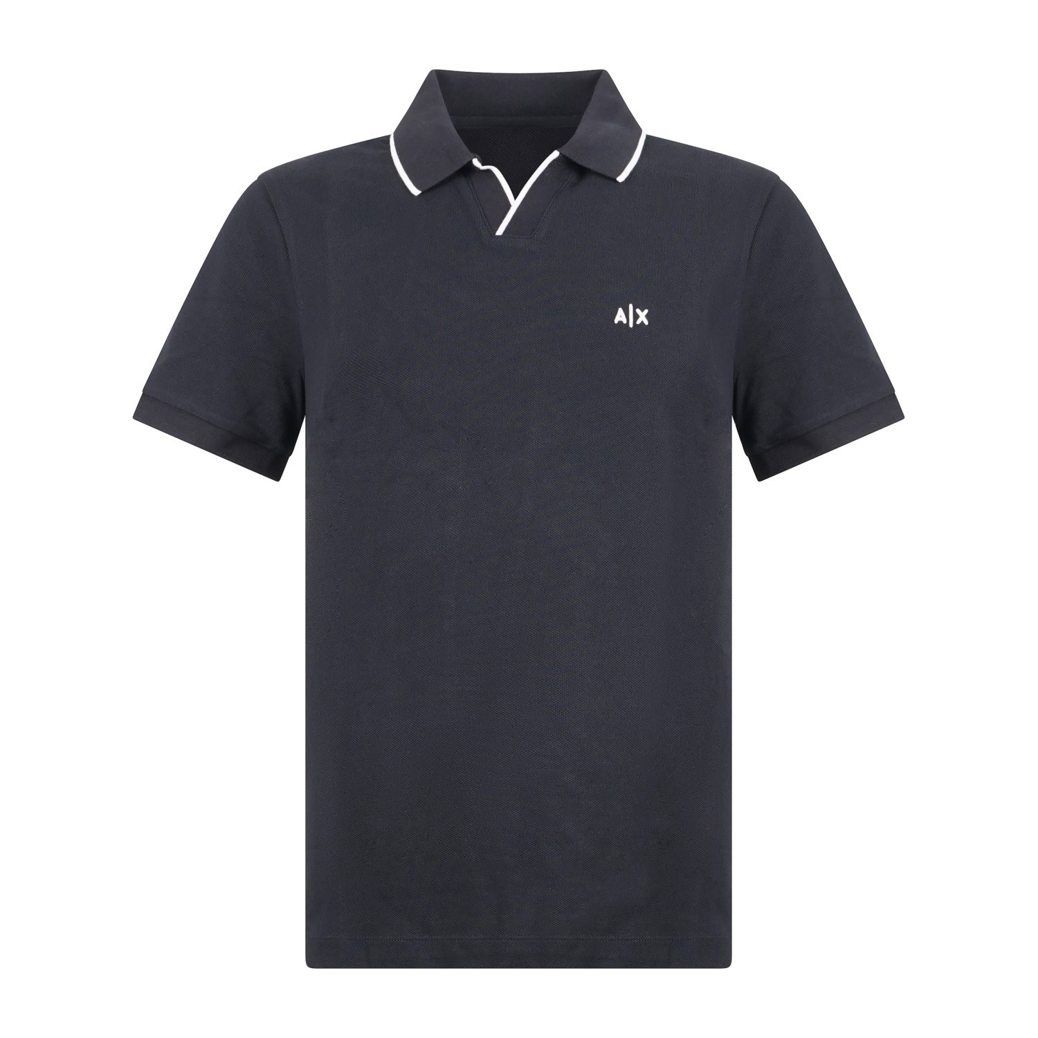 Polo blu senza bottoni maniche corte con righe sul colletto a contrasto
