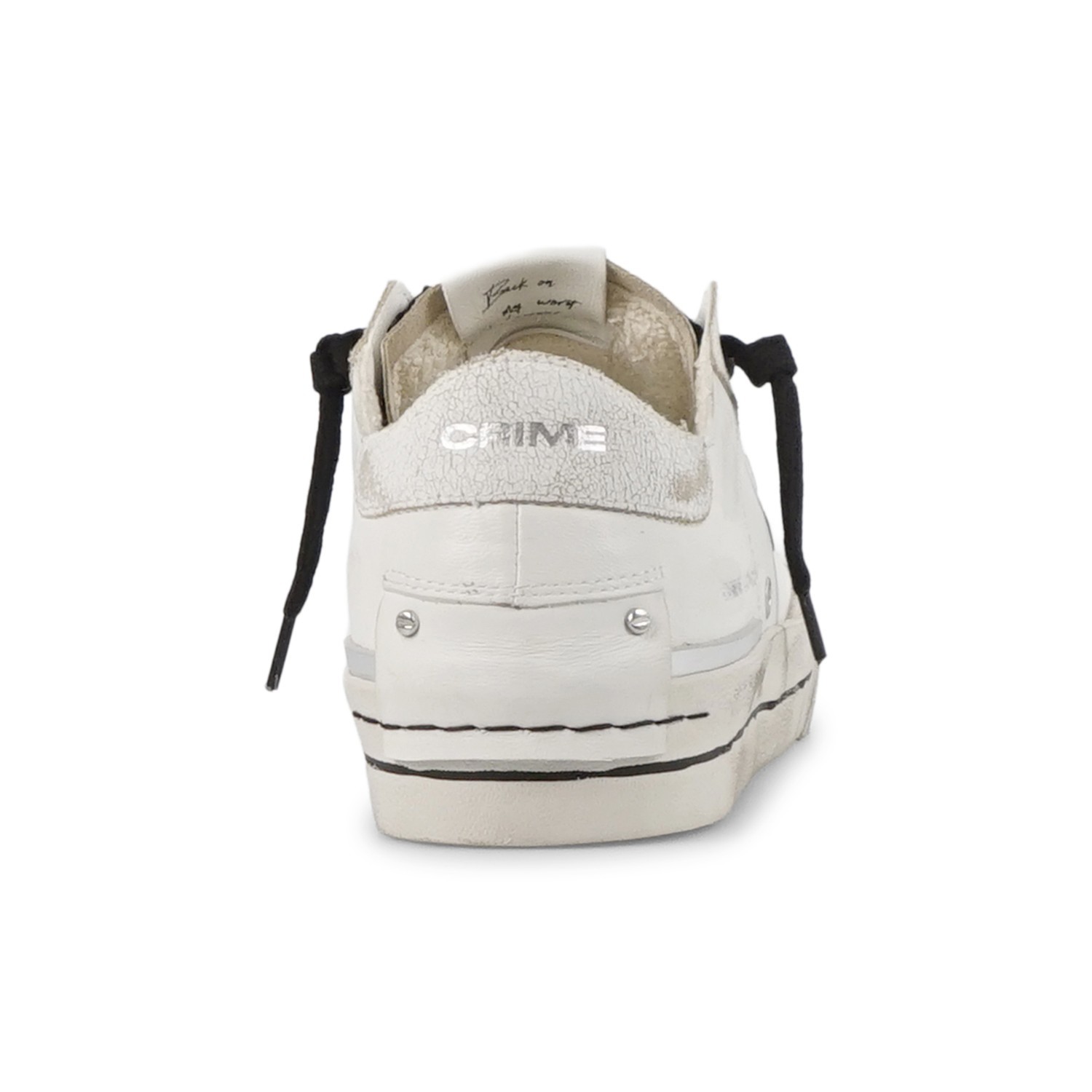 - Linguetta in cracklé bianco con label logata in pelle