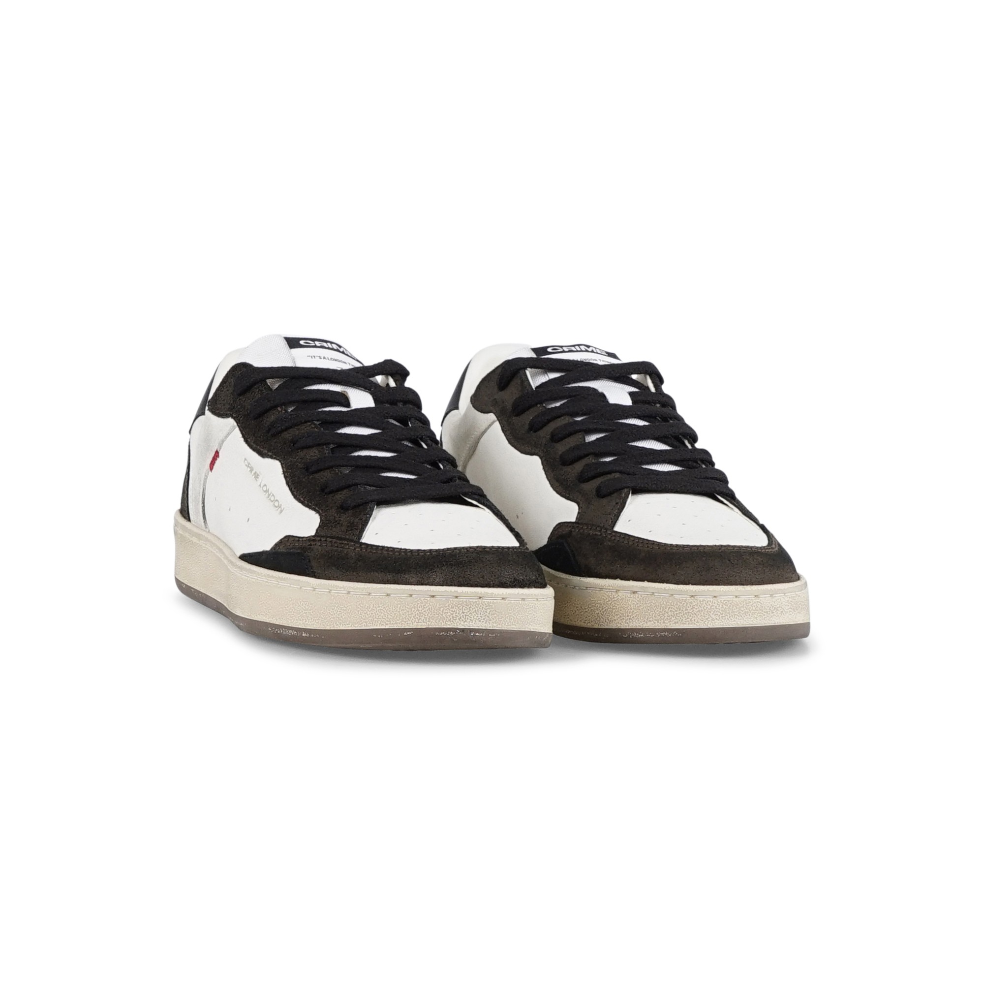 • Tomaia in pelle bianca, dettagli in pelle scamosciata marrone