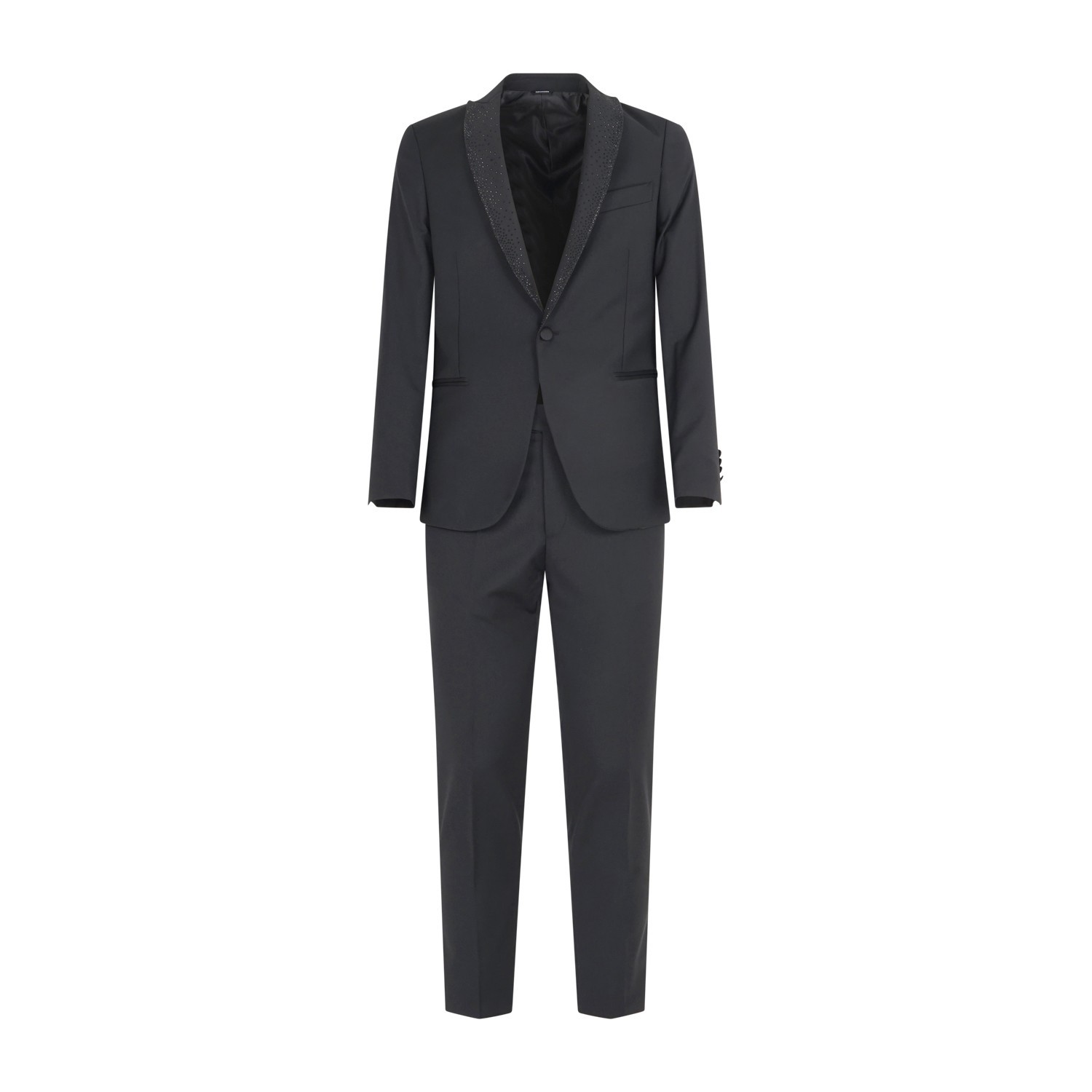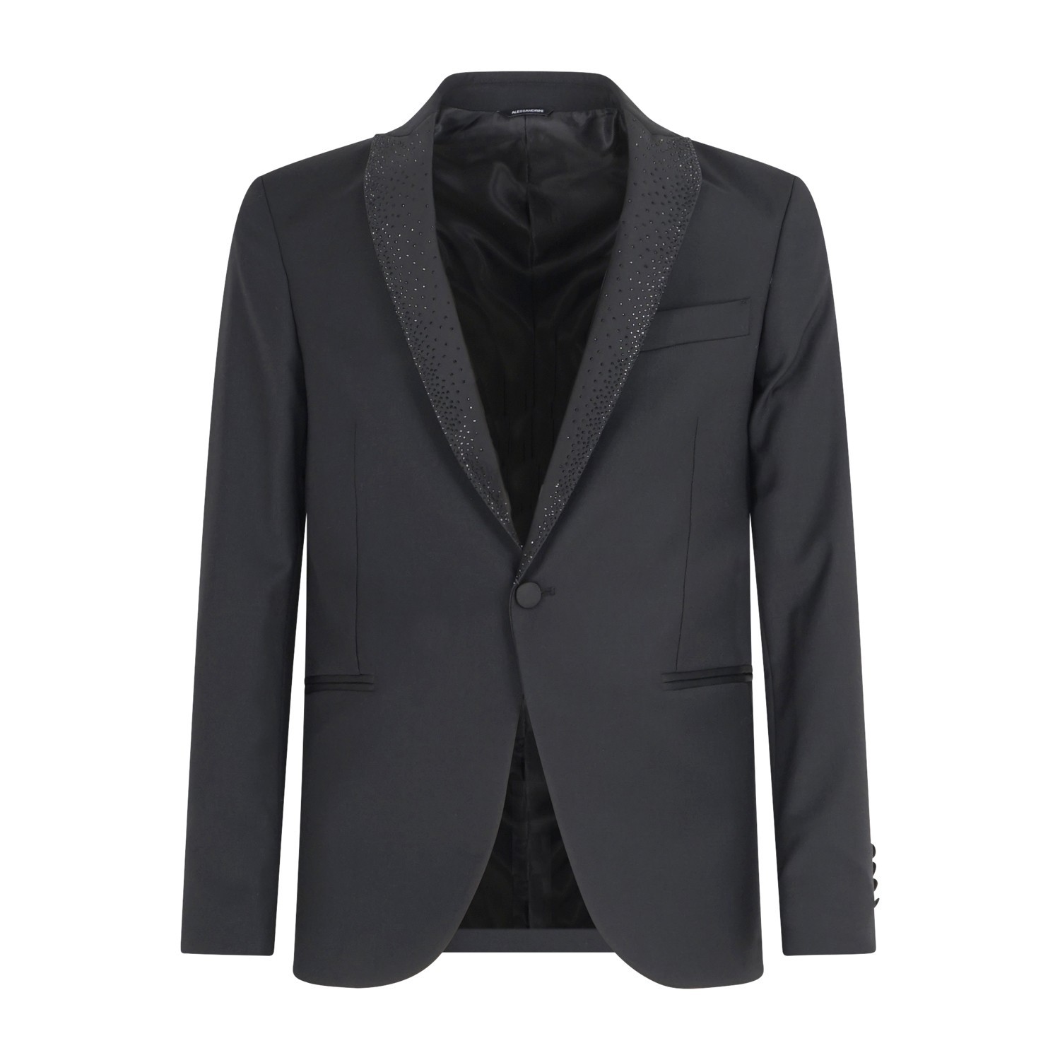 Daniele Alessandrini - Abito nero monopetto rever con elementi brillanti tono