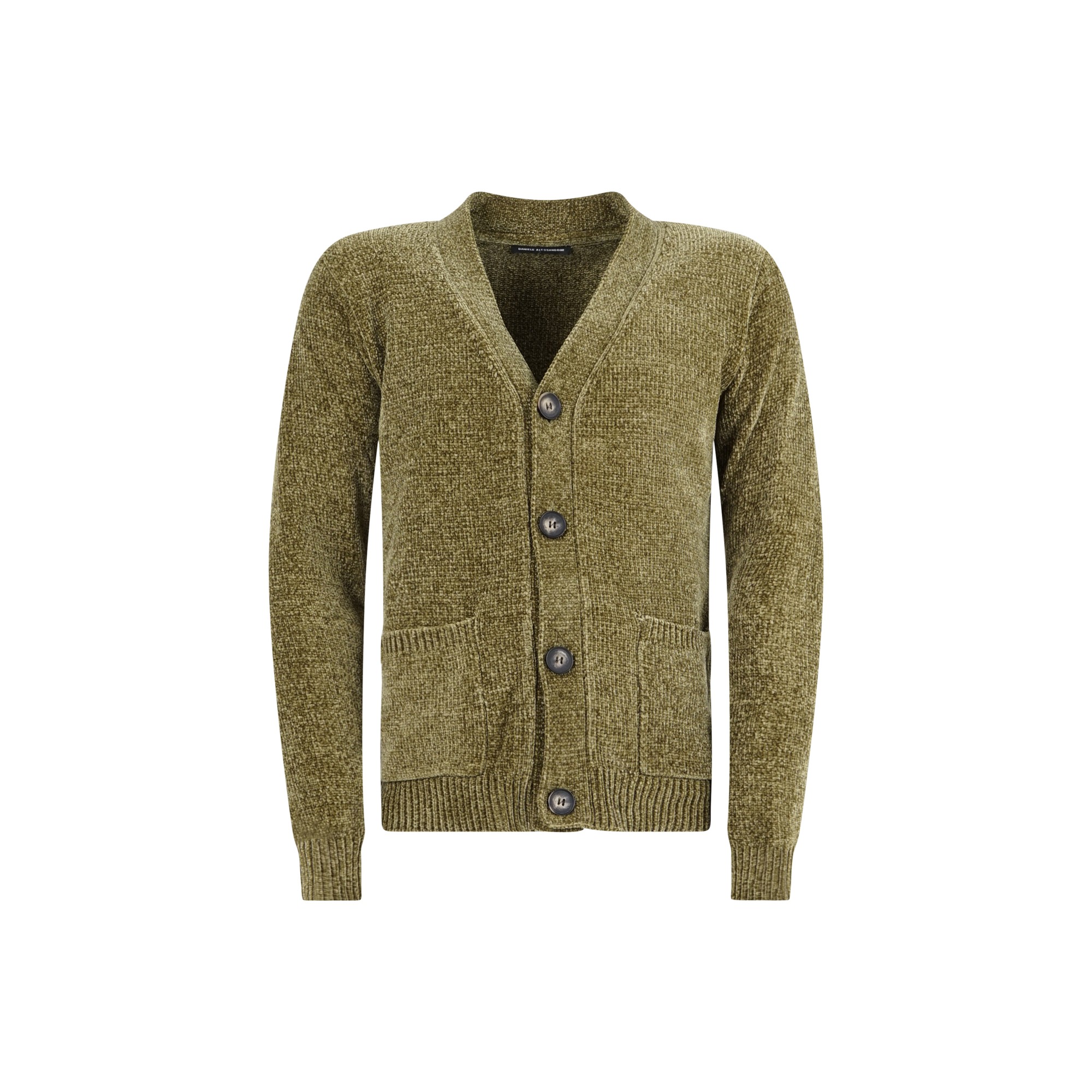 Daniele Alessandrini - Cardigan verde in ciniglia con tasche per uomo |