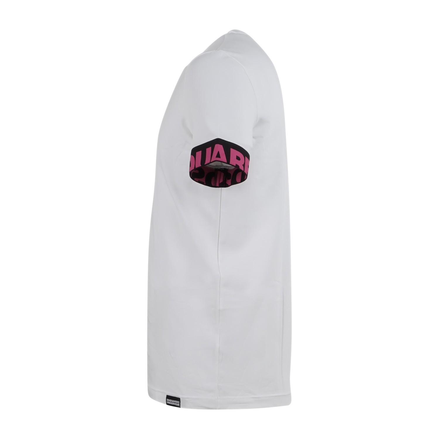 - Banda logo logata " DSQUARED2" in rosa sulla manica sinistra fondo nero