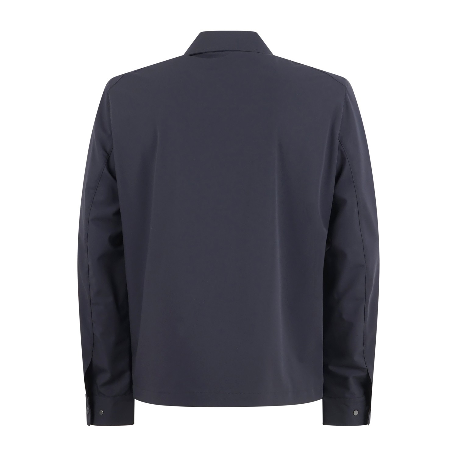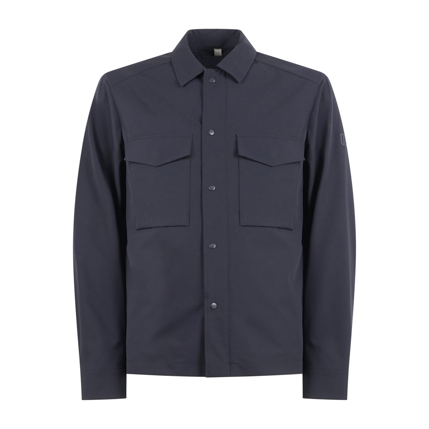 - Due tasche a toppa sul petto con patta e bottone a pressione