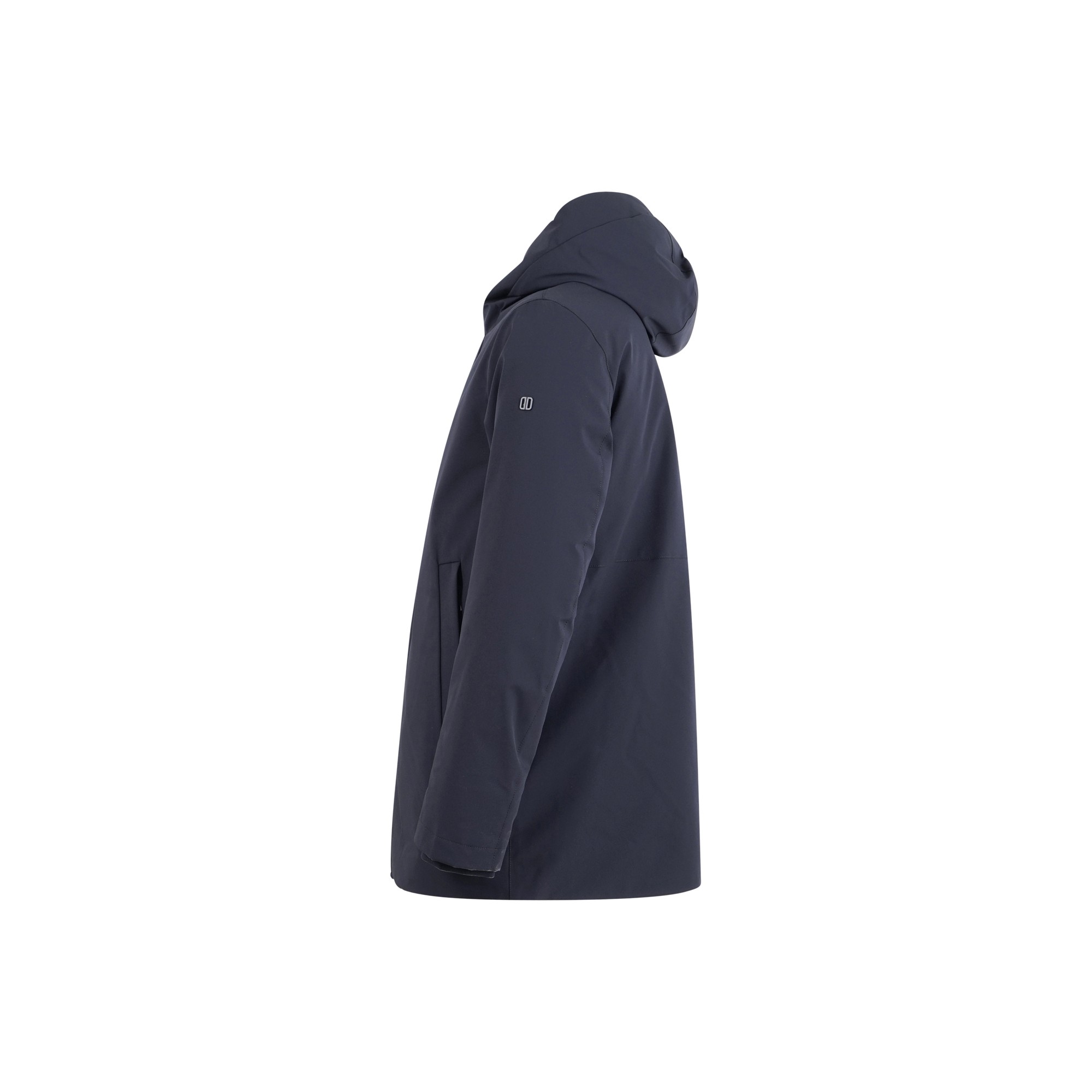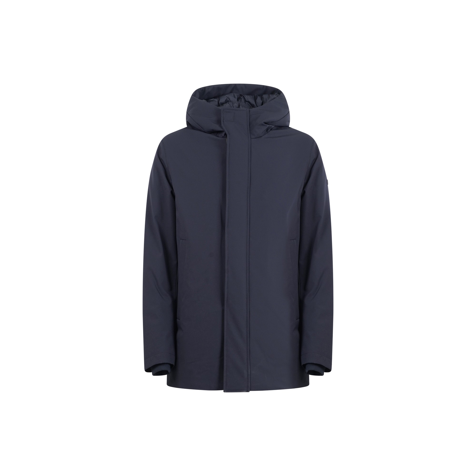 Parka corto blu con doppio cappuccio in tessuto tecnico bi-stretch