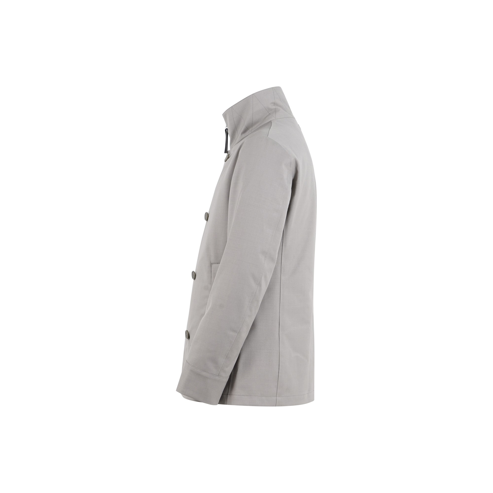 - Il capo è stato reallizato in gabardine di lana tecnica leggera e di una membrana altamente performante con impermeabilità WP 5.000 mm e traspirabilità MVP 5.000 g/mq/24h.