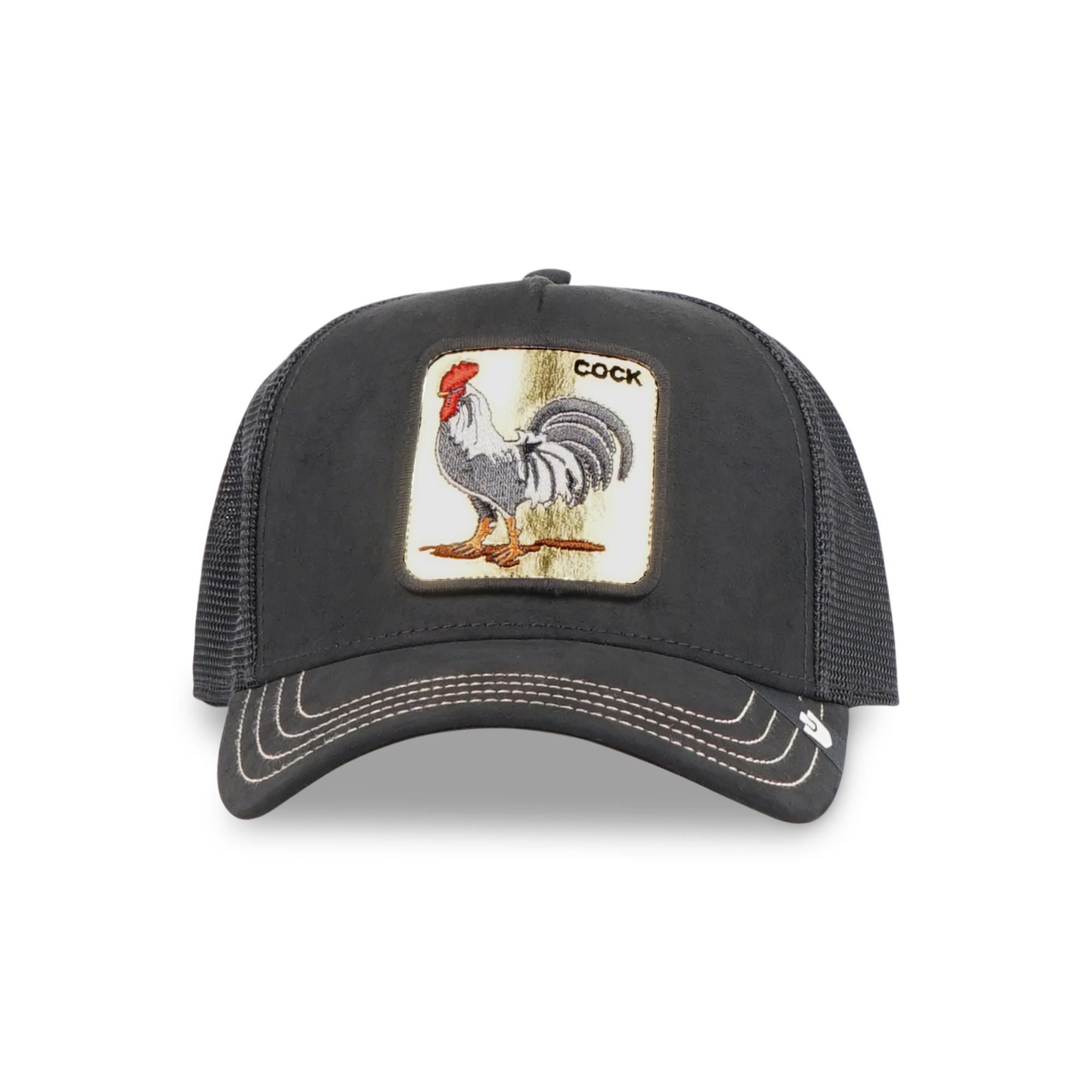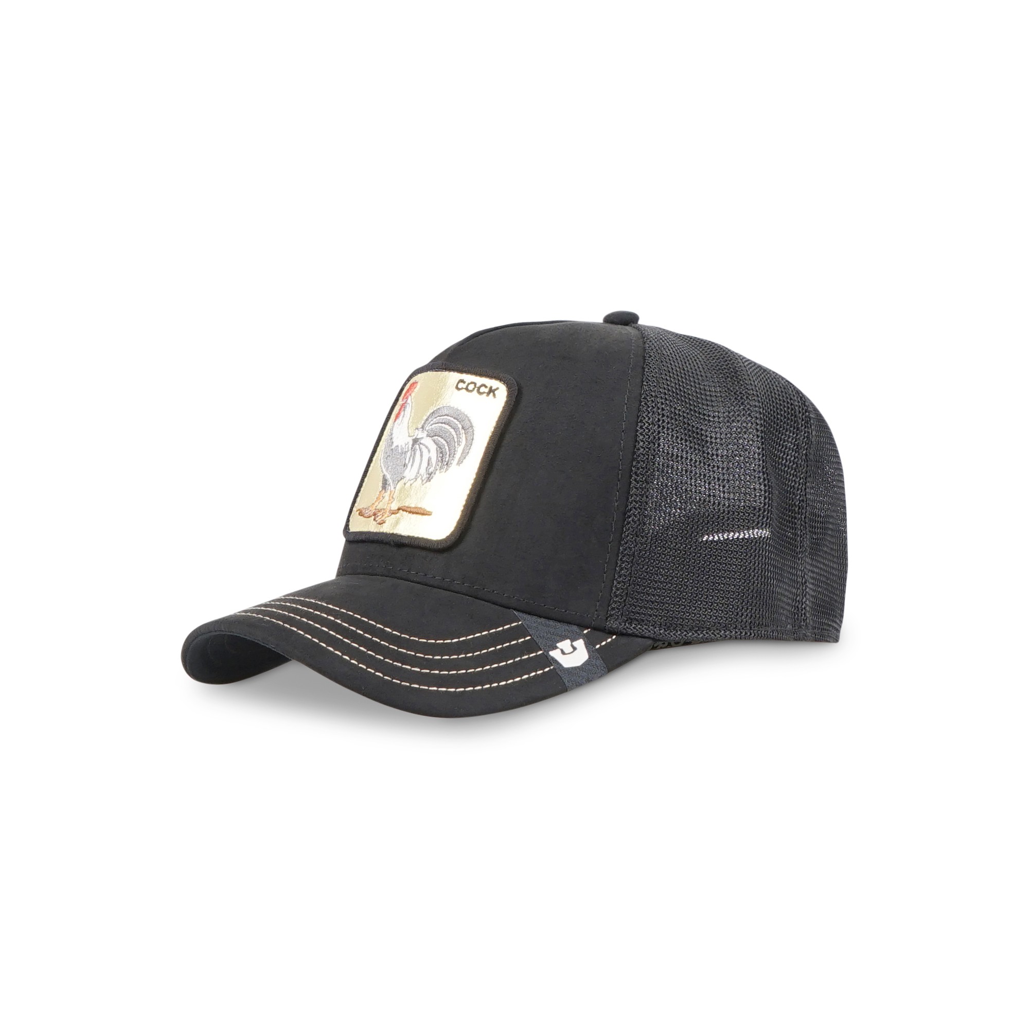 Cappello nero con visiera e retro in retina con patch dorata gallo