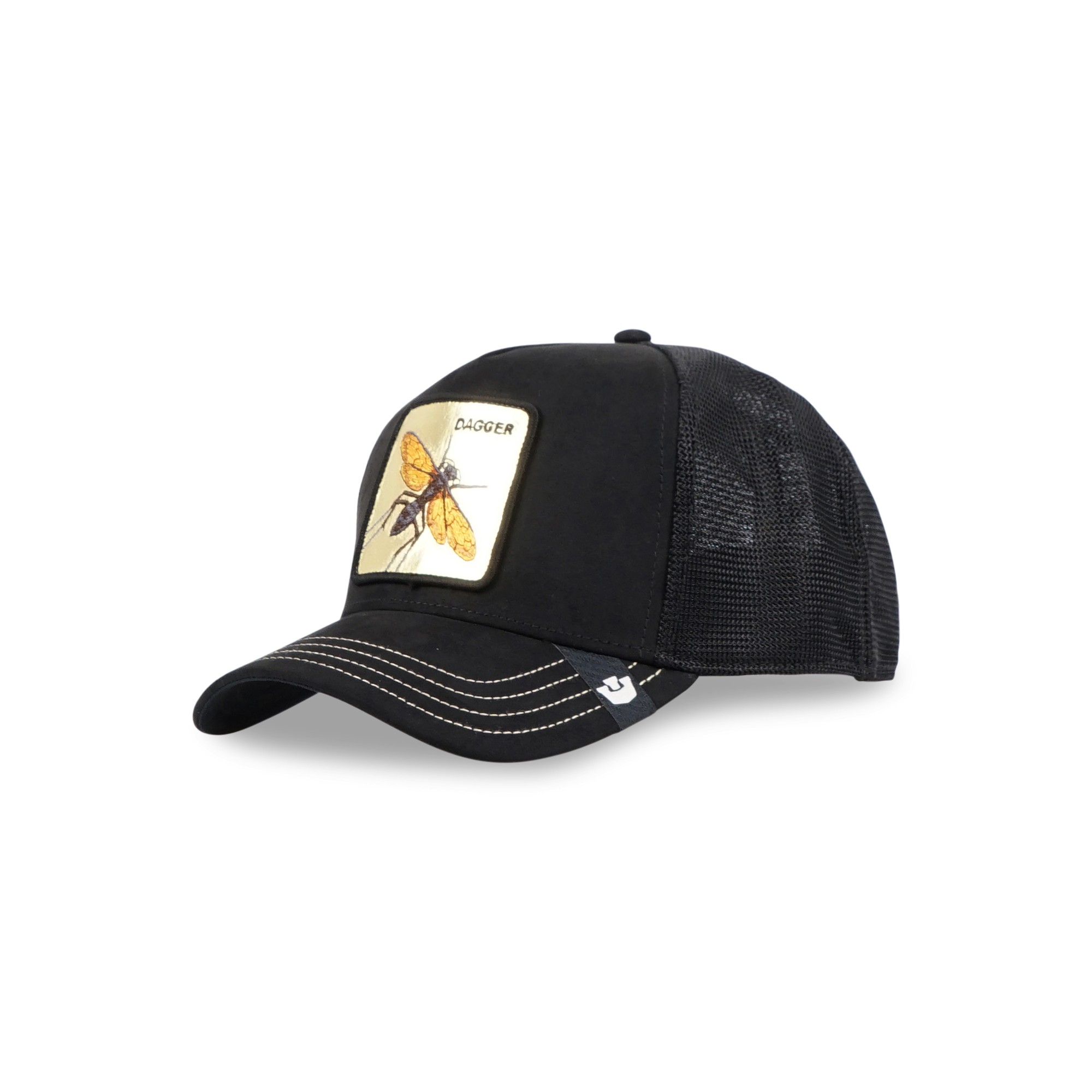 Goorin Bros. - Cappello nero con visiera e retro in retina con patch dorata
