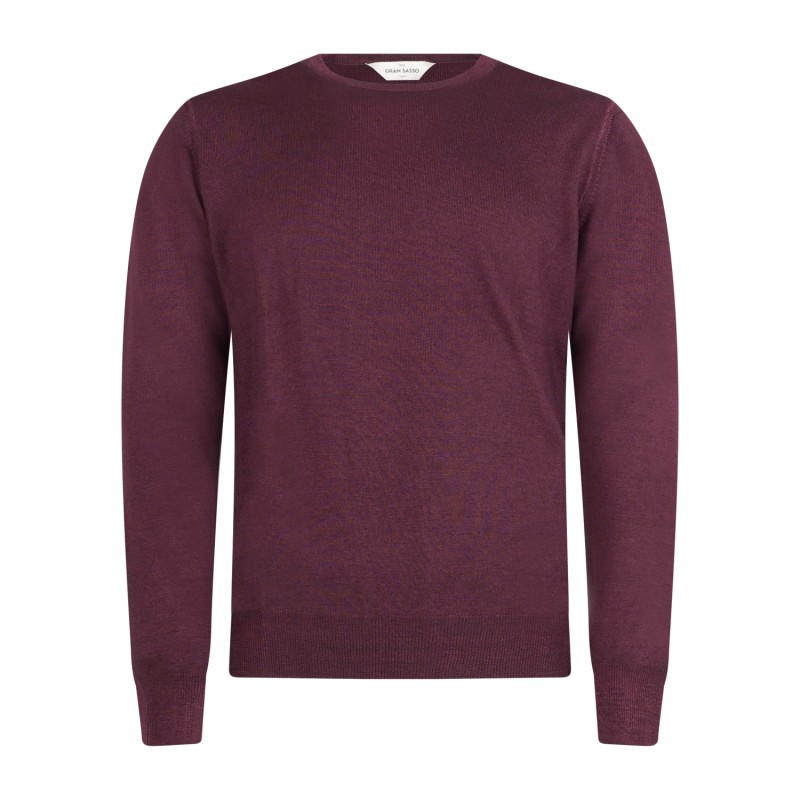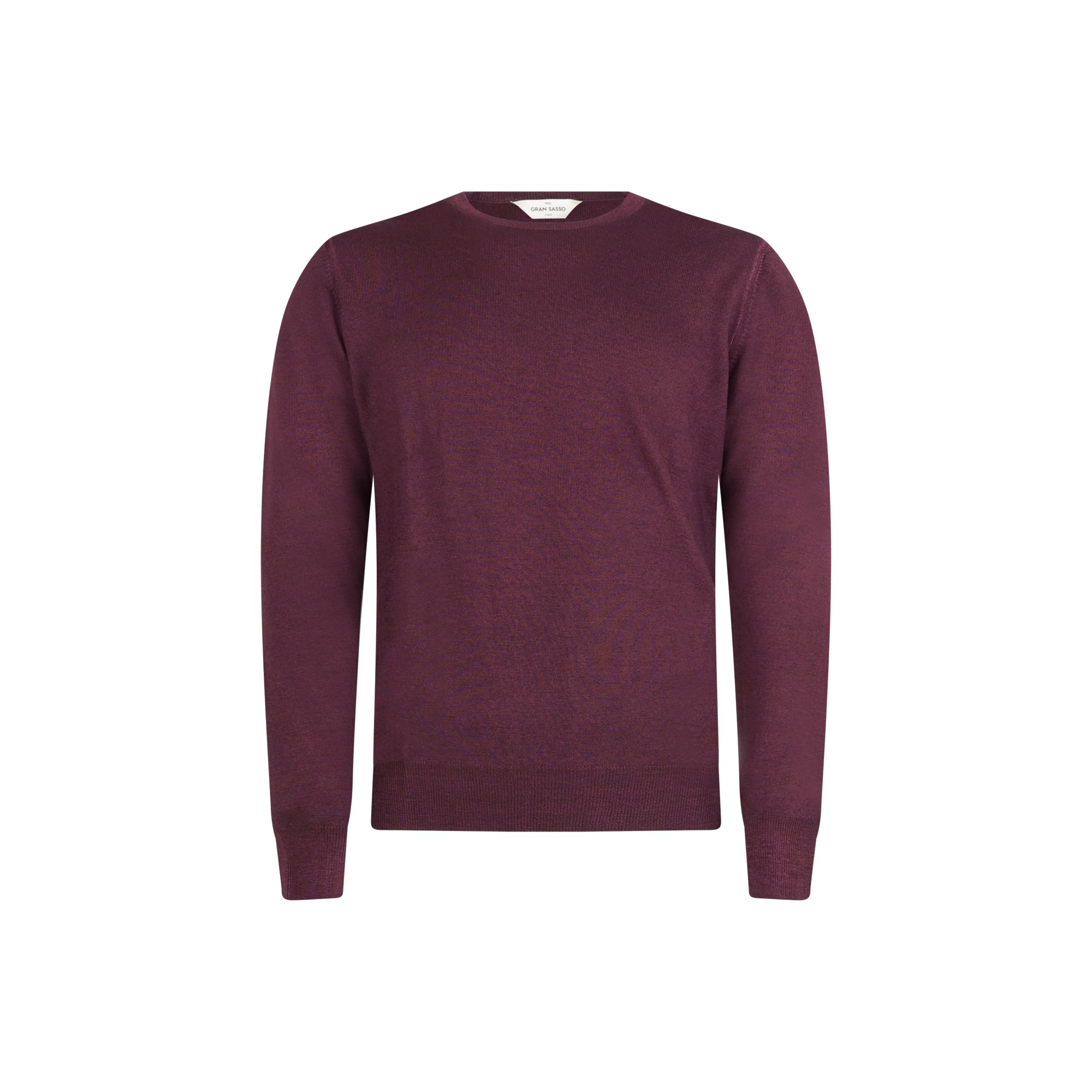 Gran Sasso - Maglione girocollo Bordeaux in lana vergine tinto freddo per uomo