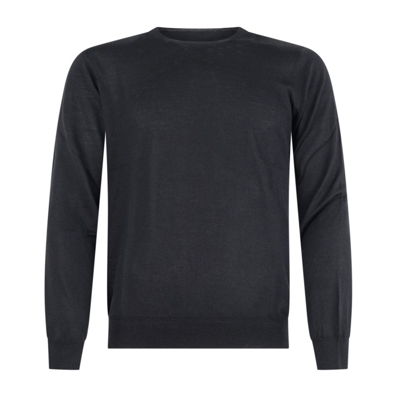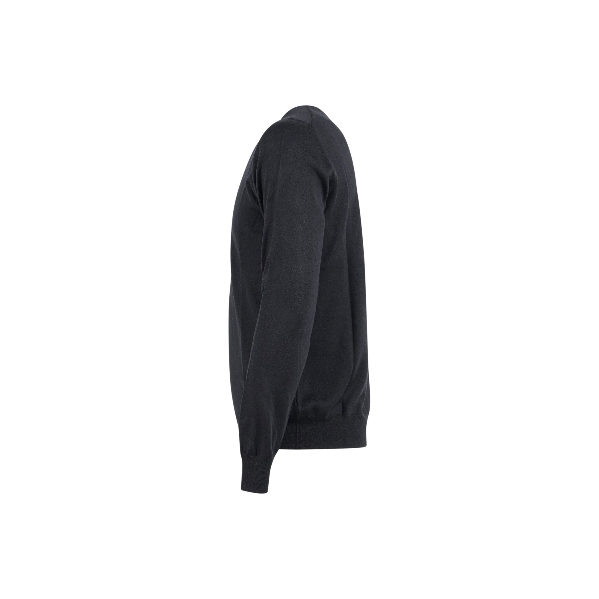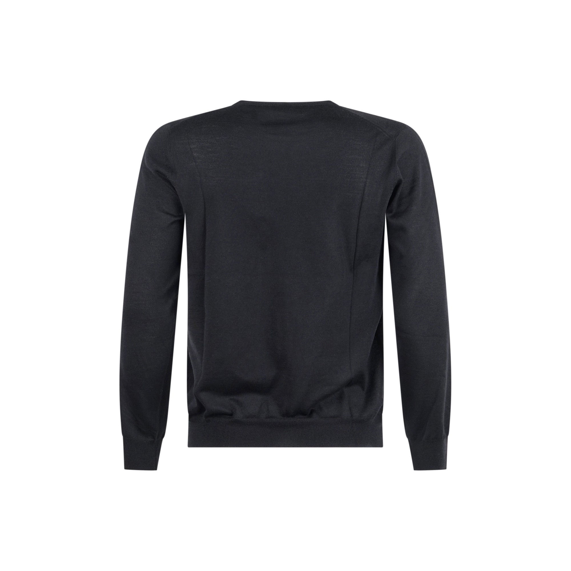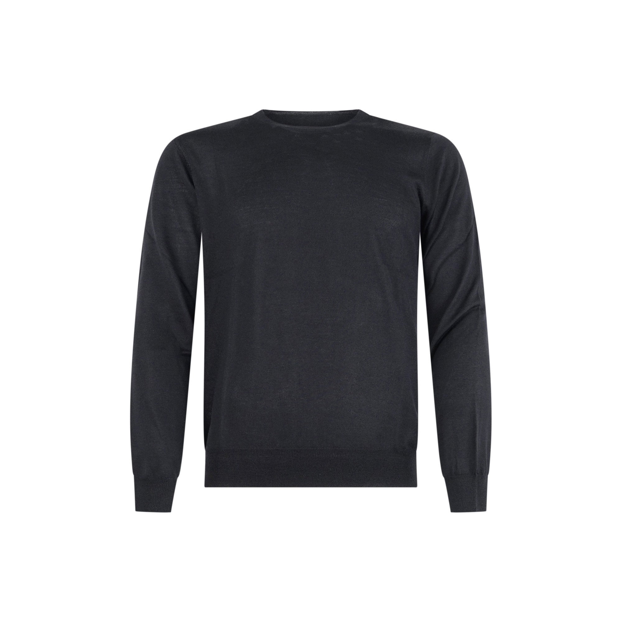 Gran Sasso - Maglione girocollo nero in lana vergine e seta per uomo |