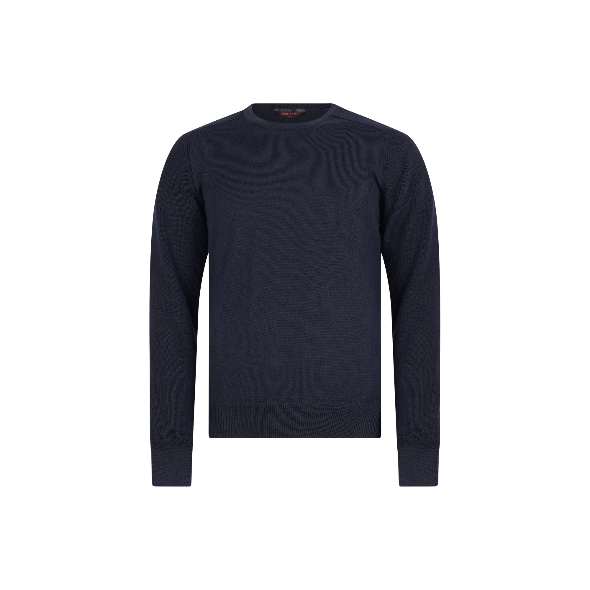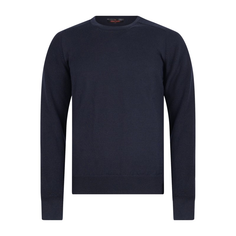 Gran Sasso - Maglione girocollo blu in lana vergine idrorepellente con