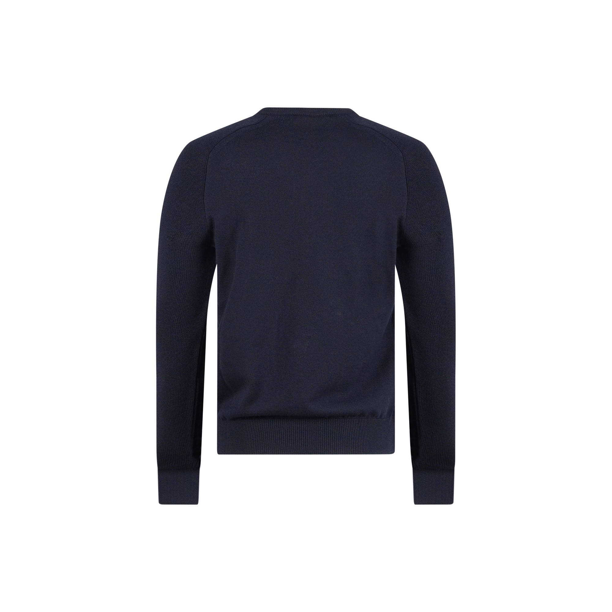 Maglione girocollo blu in lana vergine idrorepellente con lavorazione coste perlata