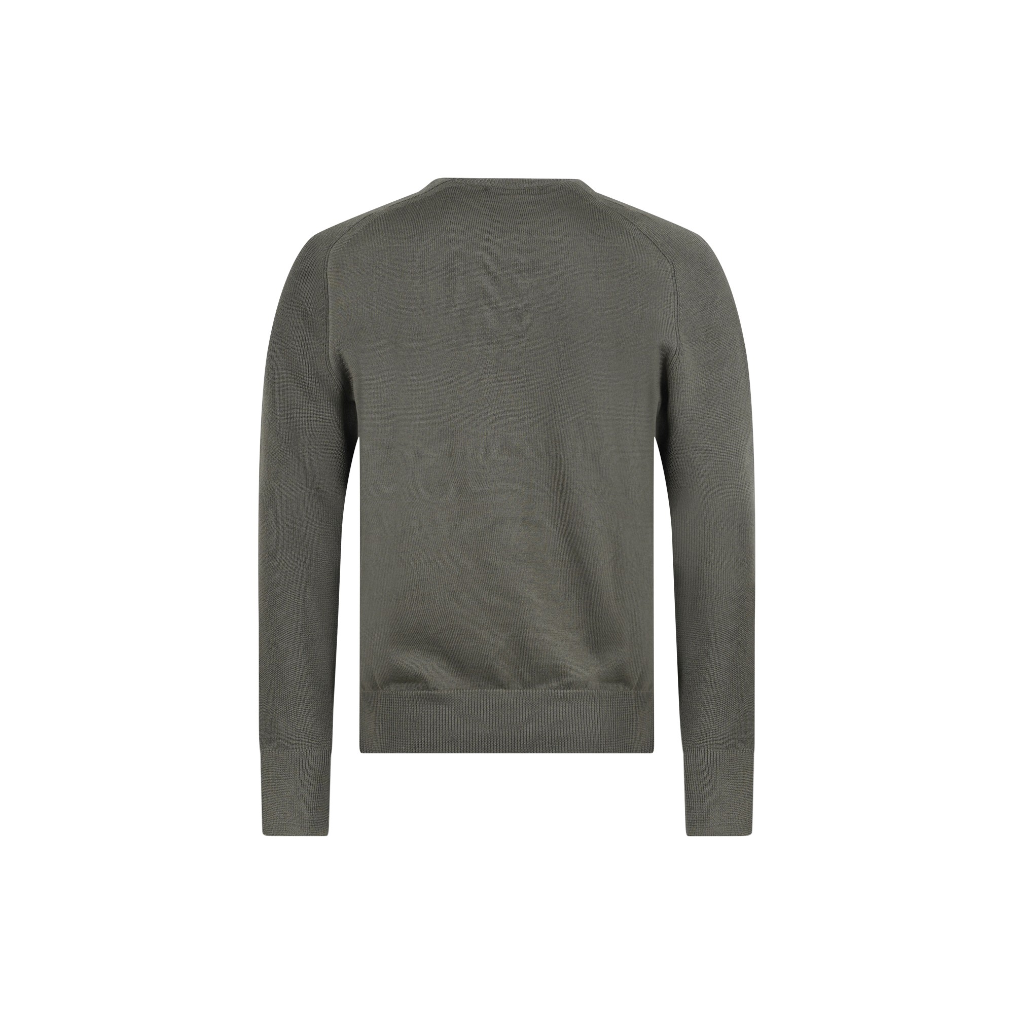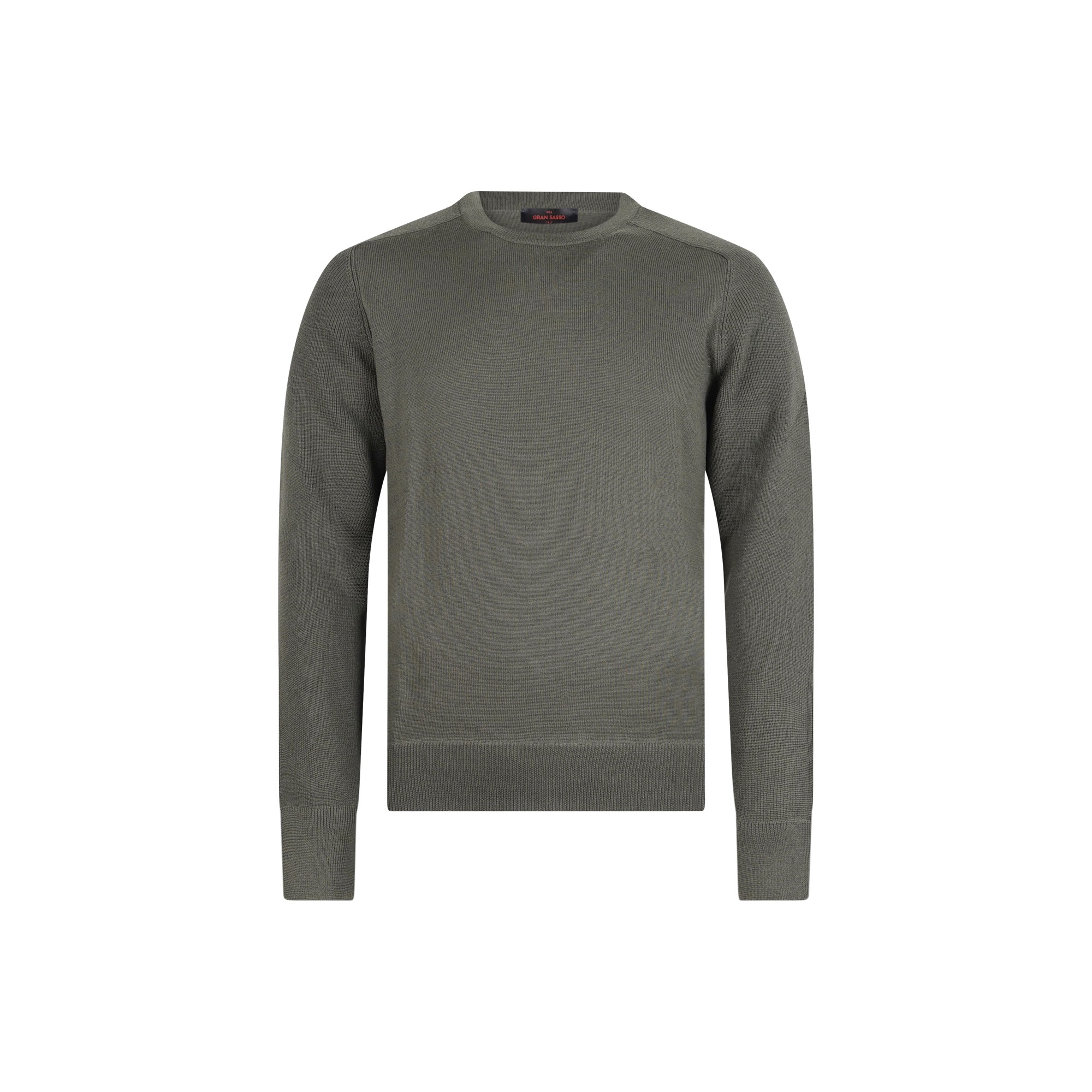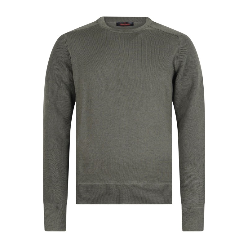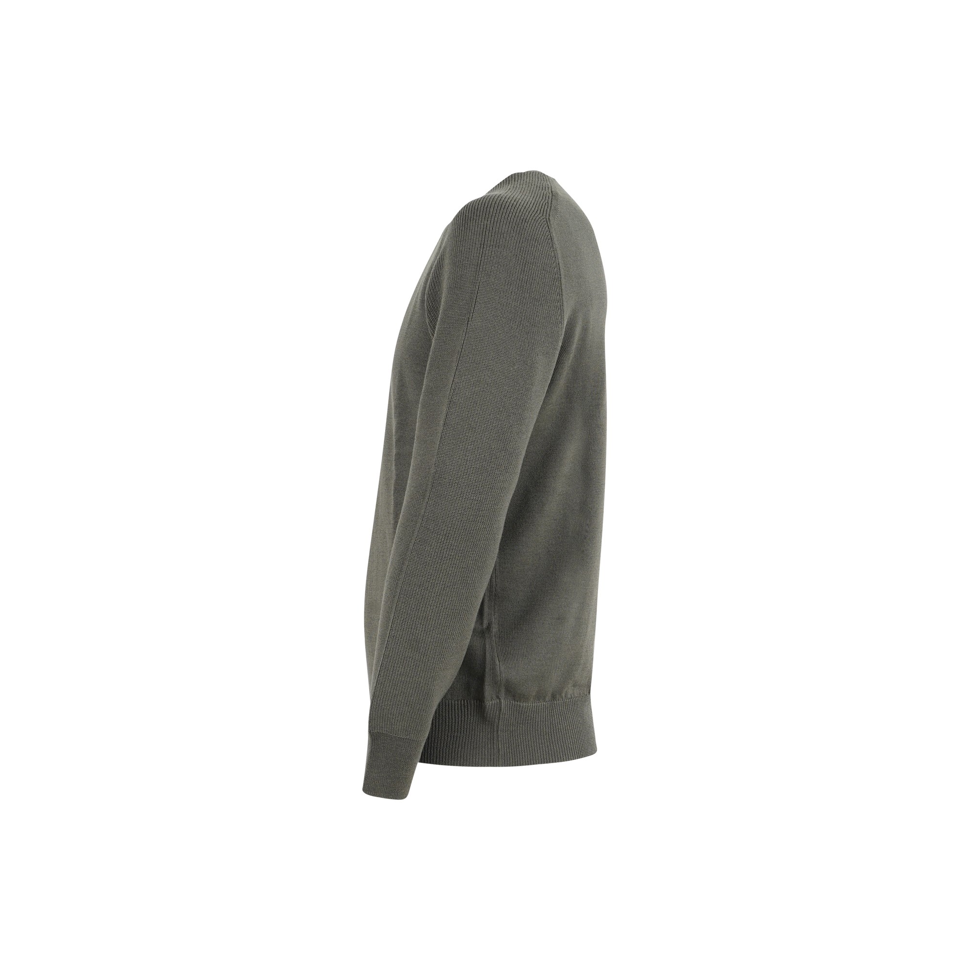 Maglione girocollo verde in lana vergine idrorepellente con lavorazione coste perlata