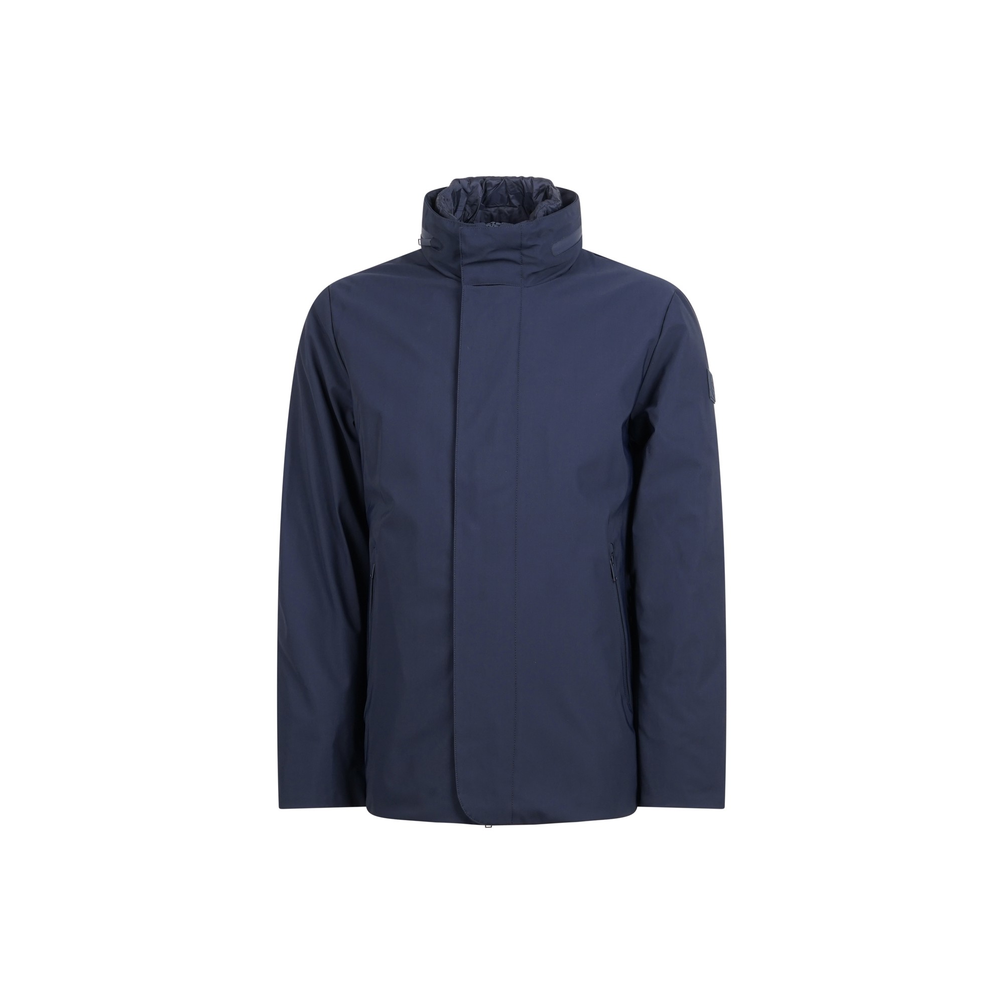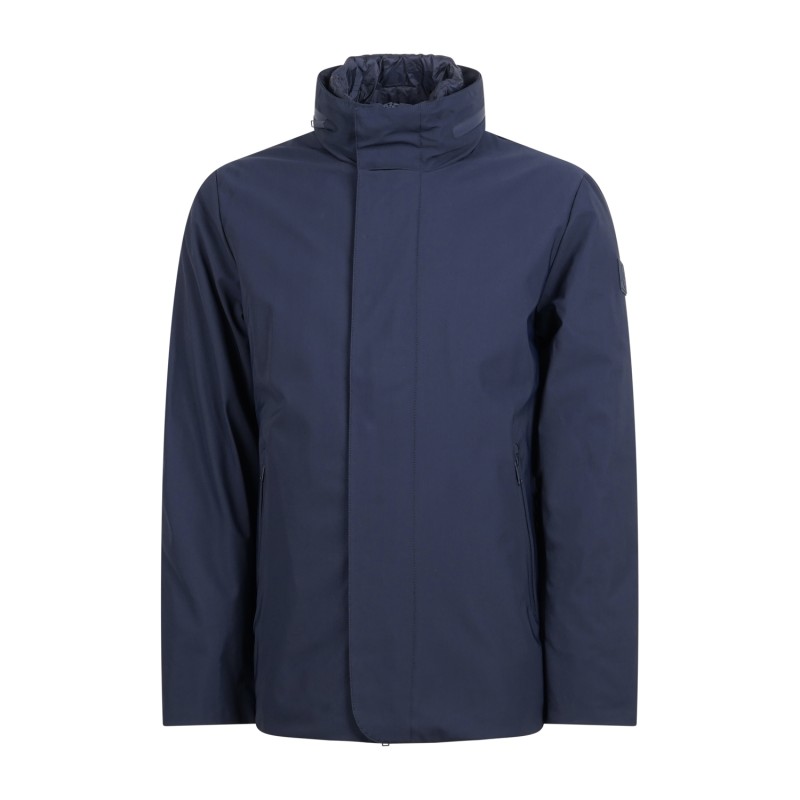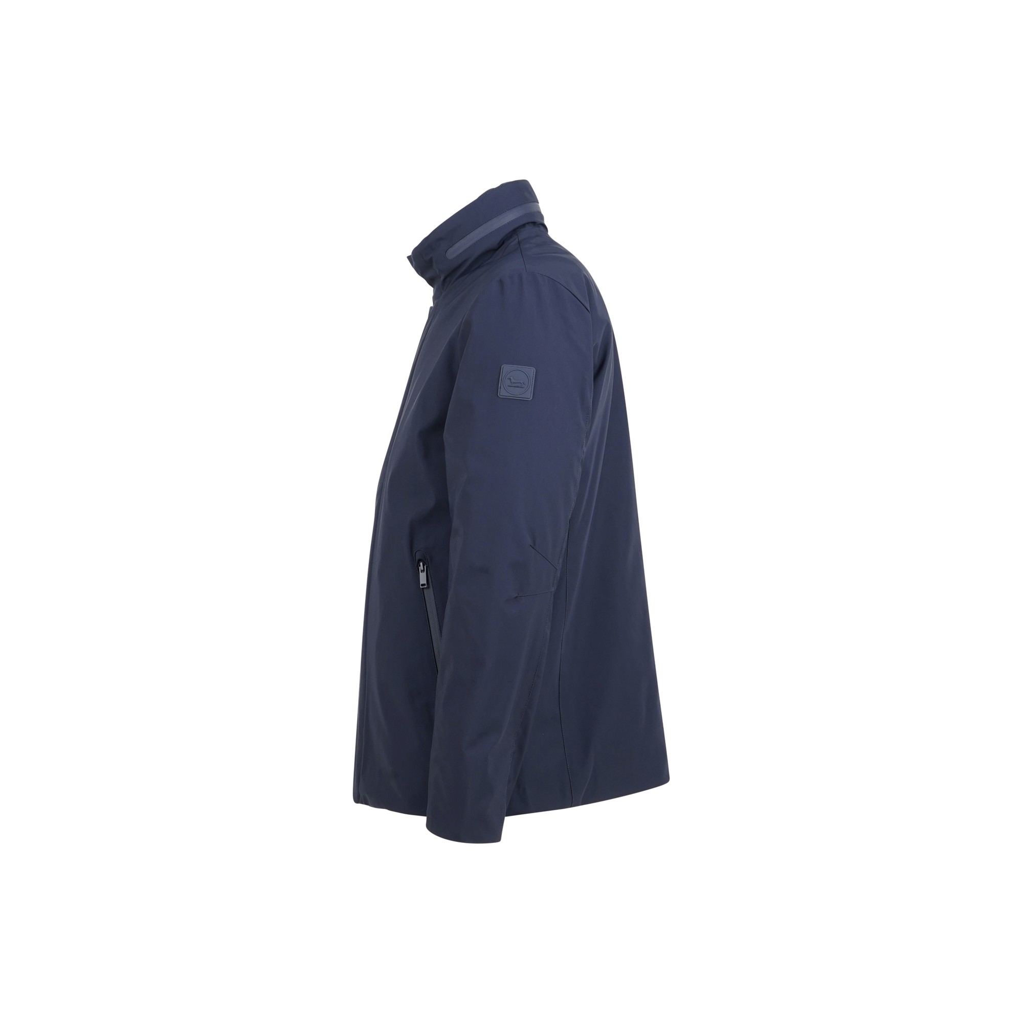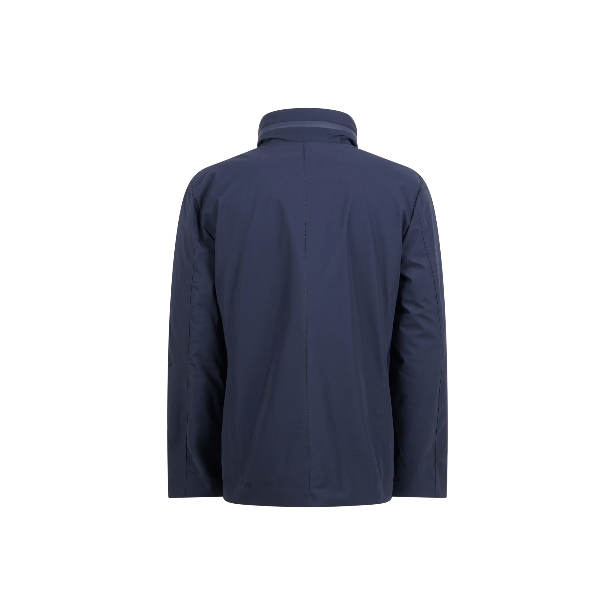Field jacket blu in tessuto tecnico con pettorina in nylon staccabile ed estraibile