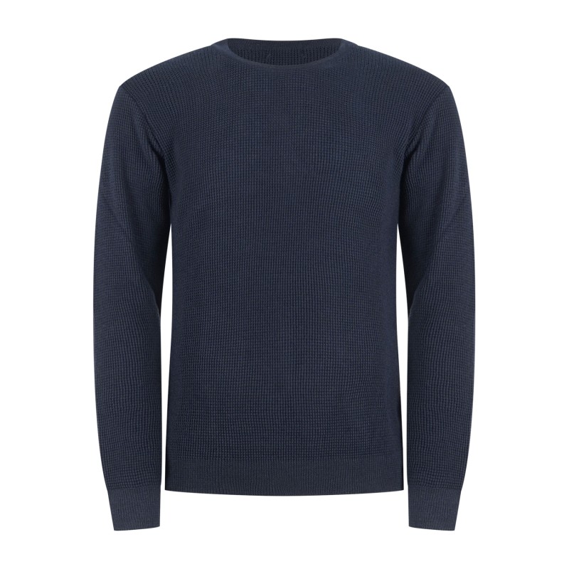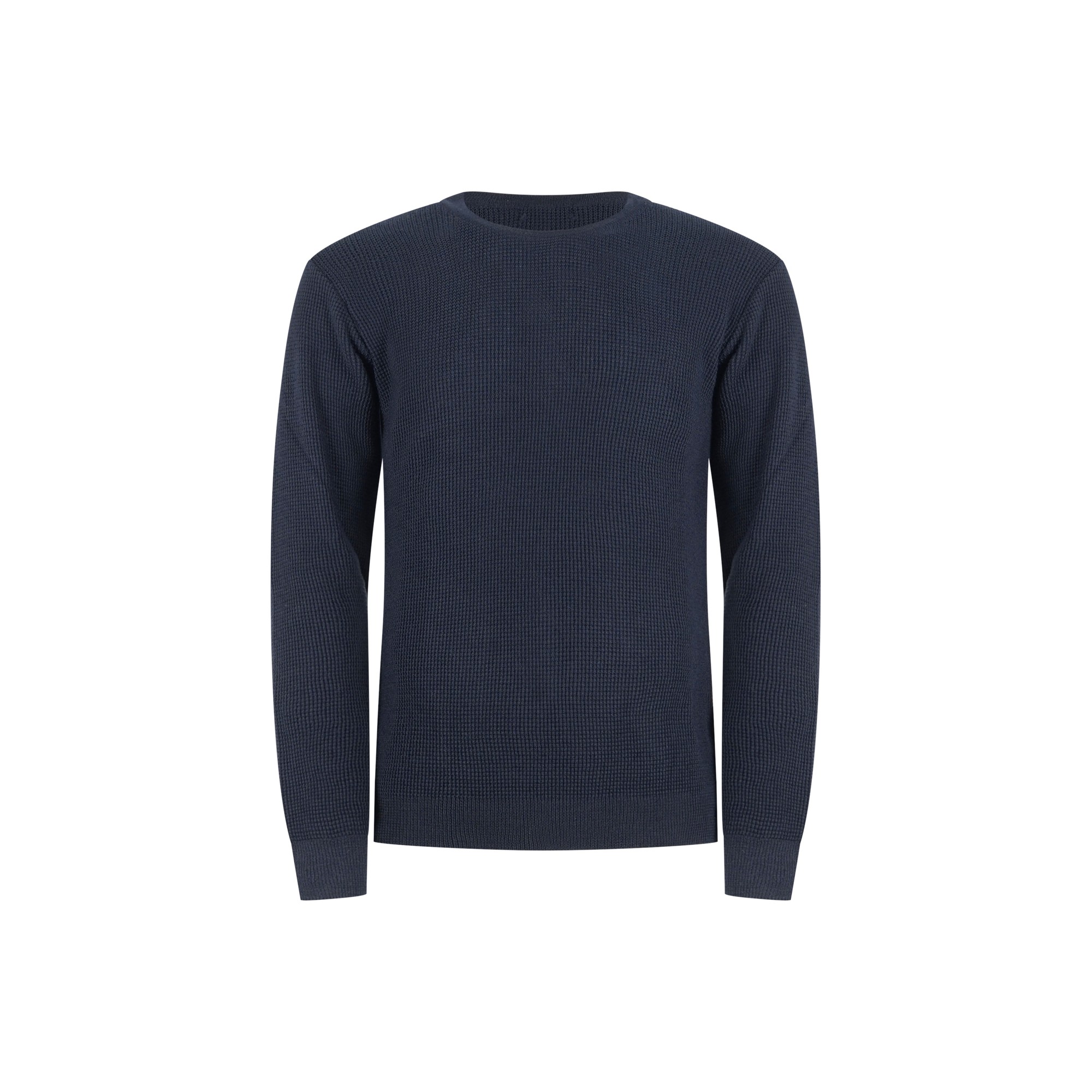 Luca Bertelli - Maglione blu girocollo con lavorazione a nido d'ape per uomo |
