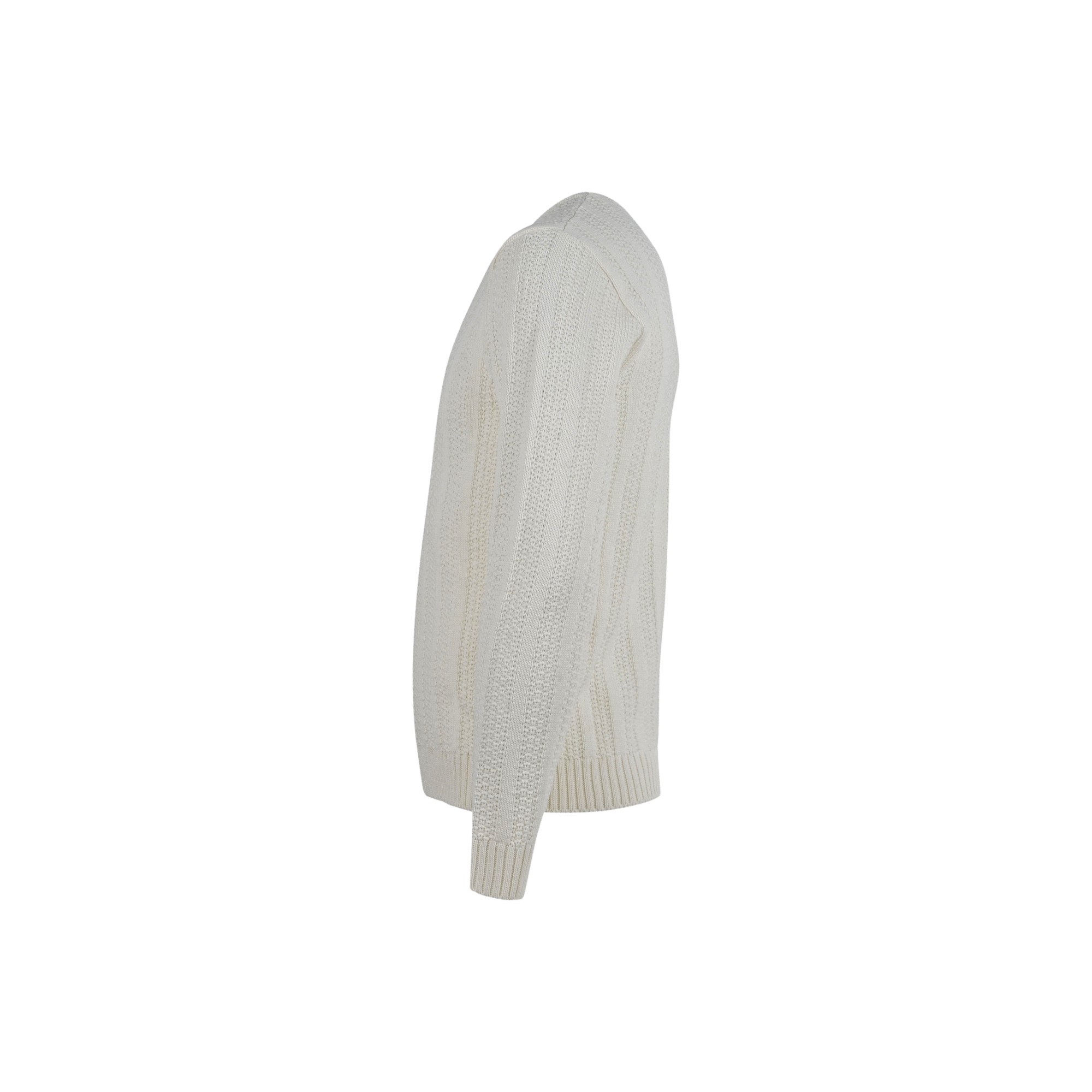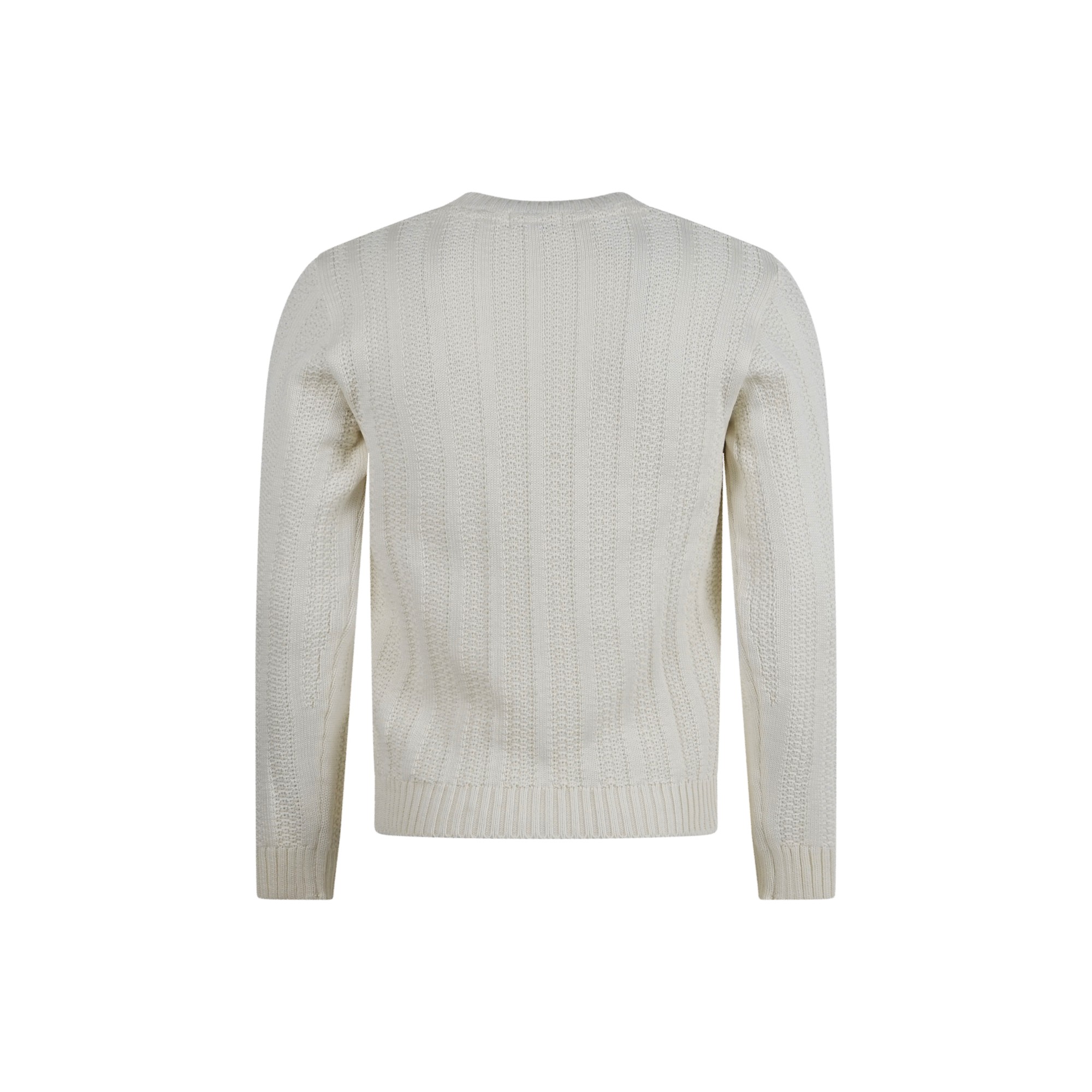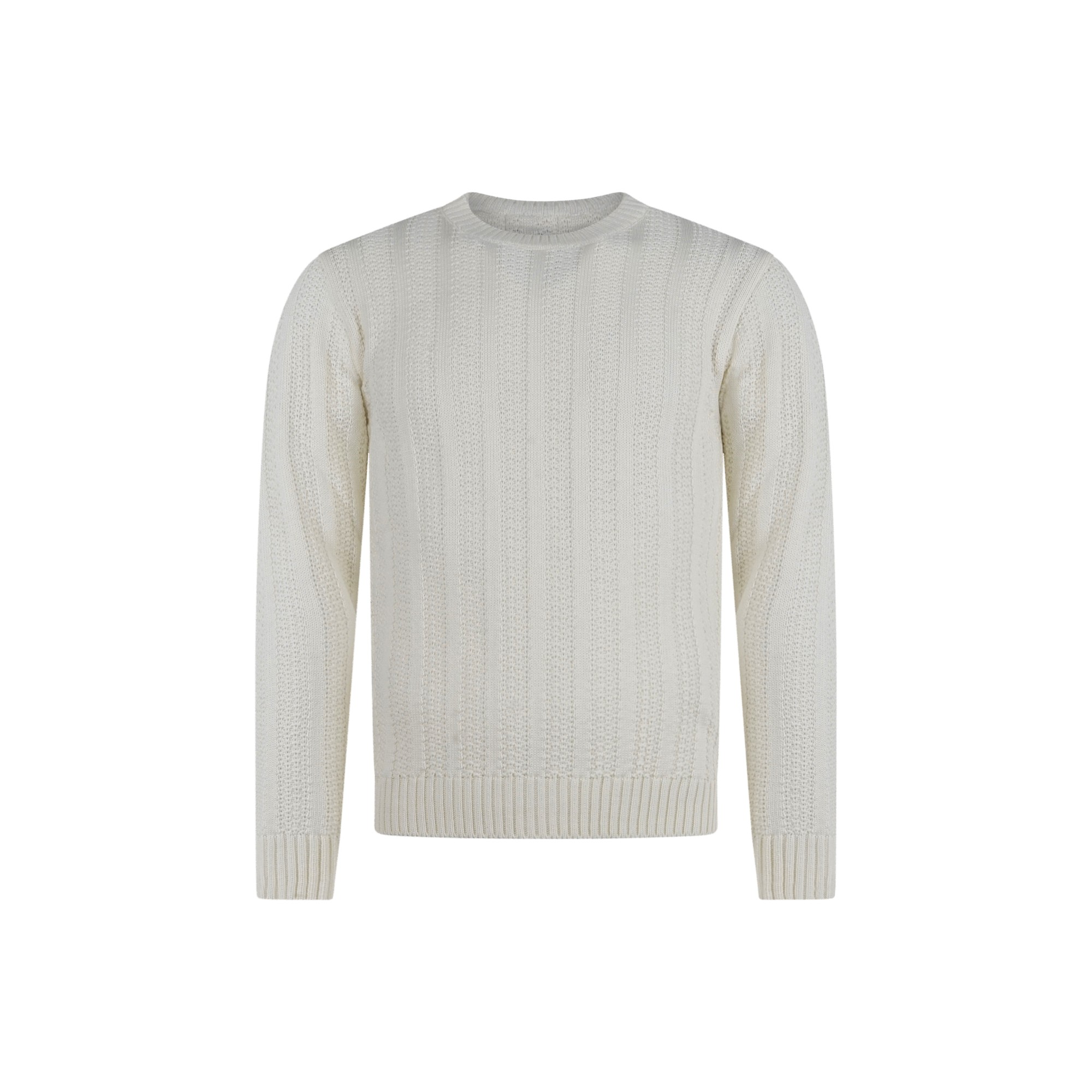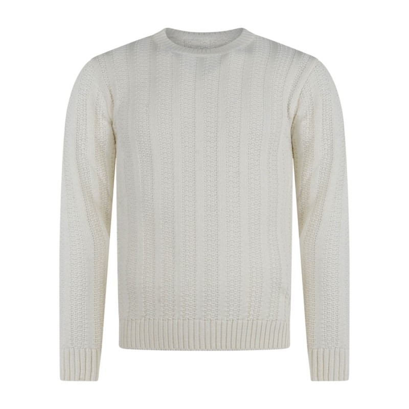 Luca Bertelli - Maglione bianco girocollo con lavorazione a coste per uomo |