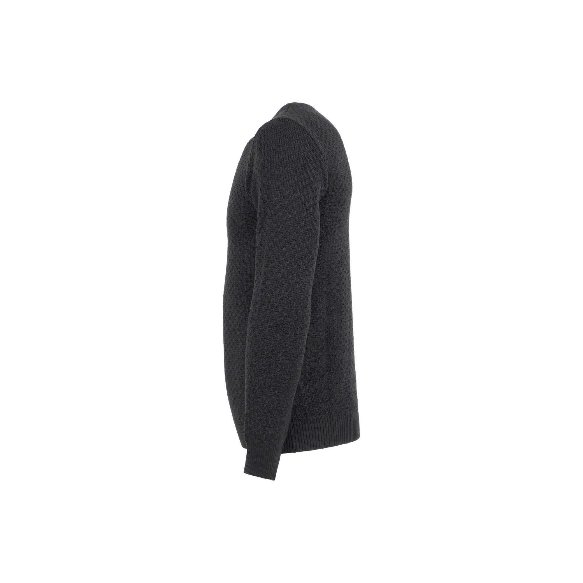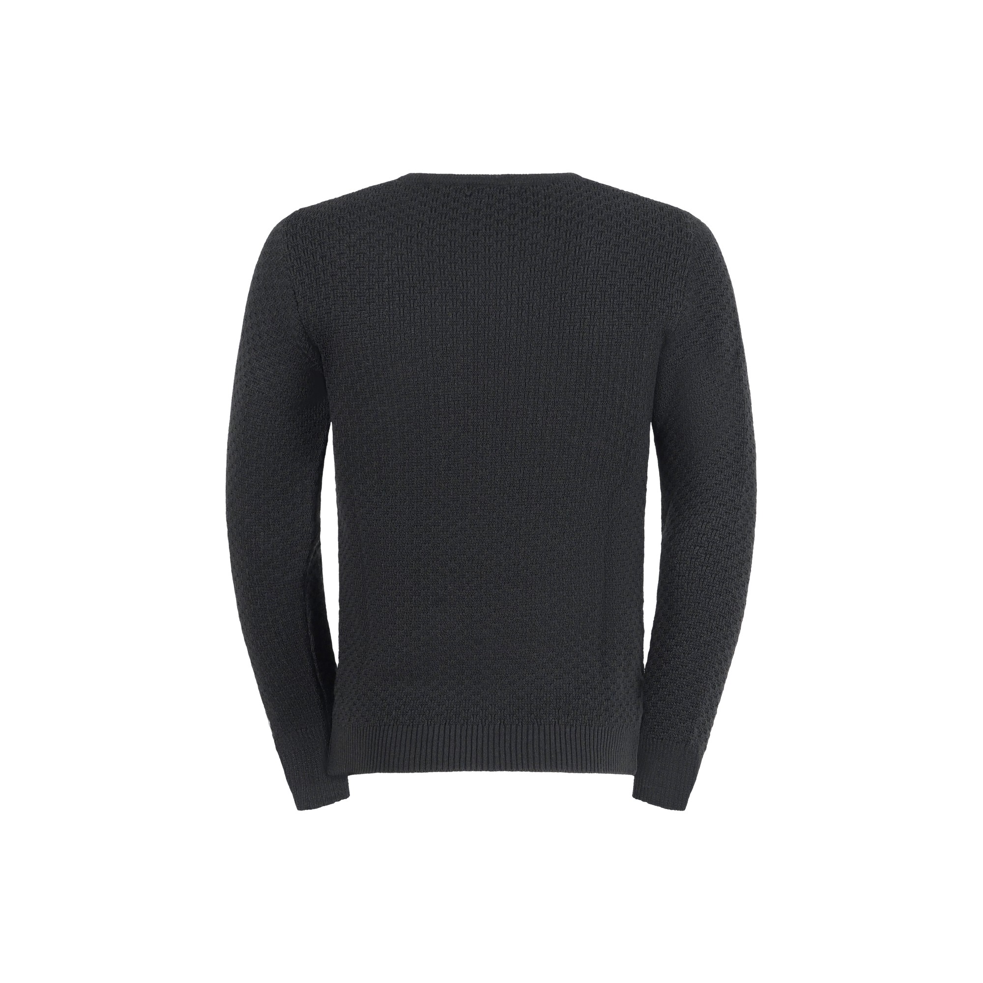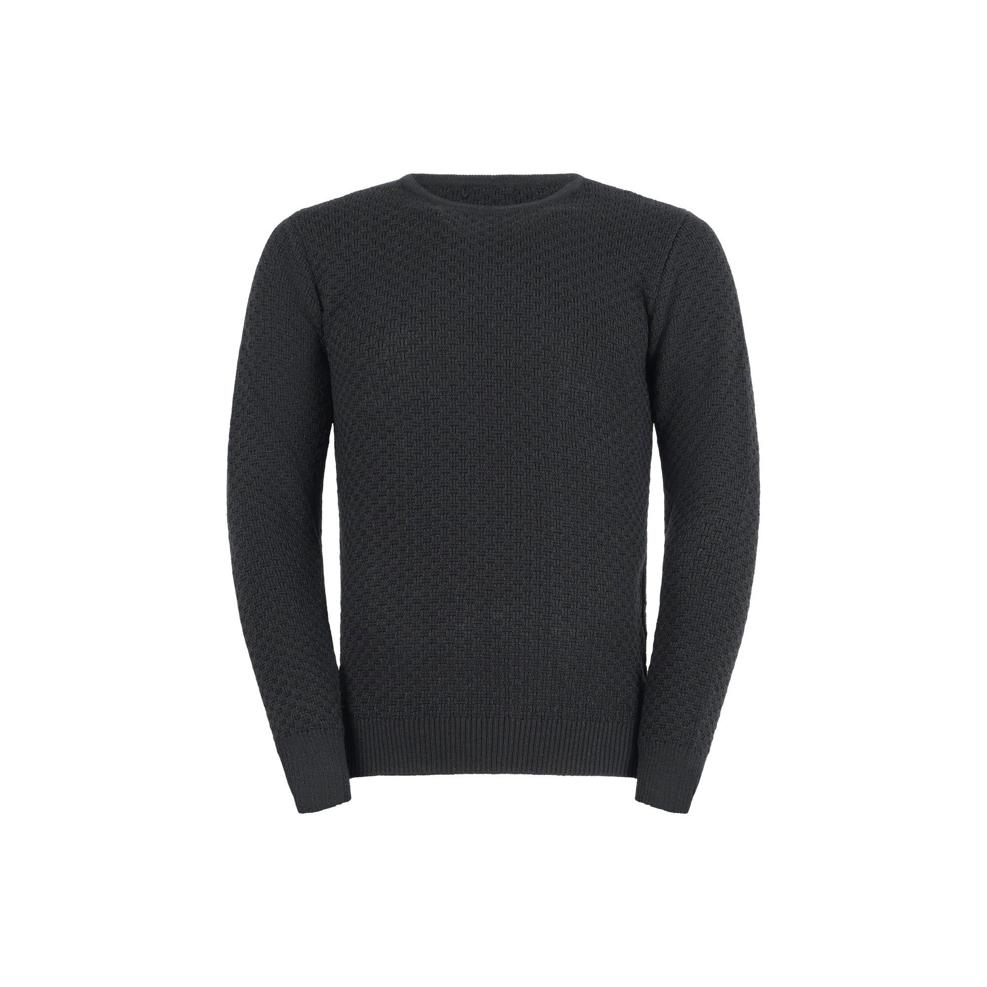 Maglione nero girocollo con lavorazione intarsio