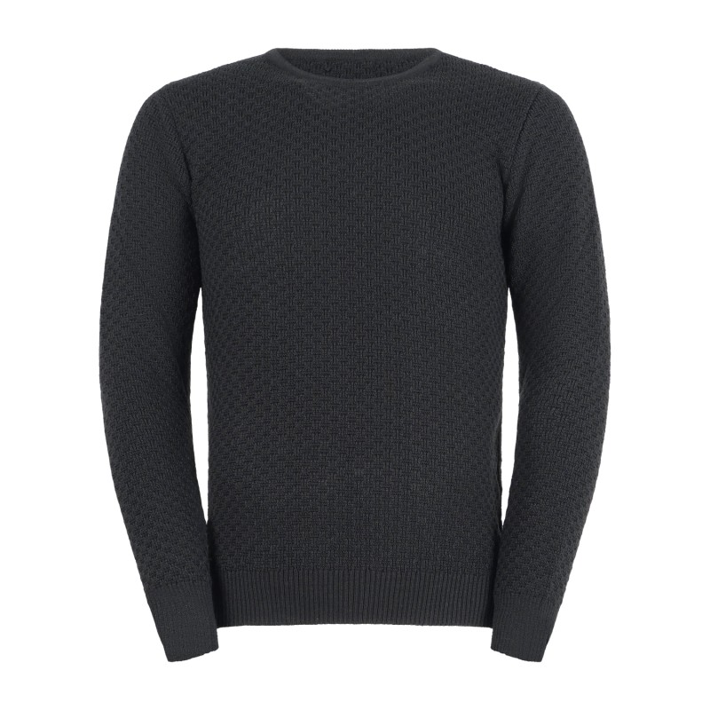 Luca Bertelli - Maglione nero girocollo con lavorazione intarsio per uomo |