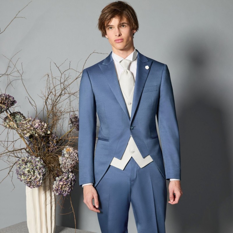 Luigi Bianchi Cerimonia - Abito Classico monopetto azzurro con rever a lancia