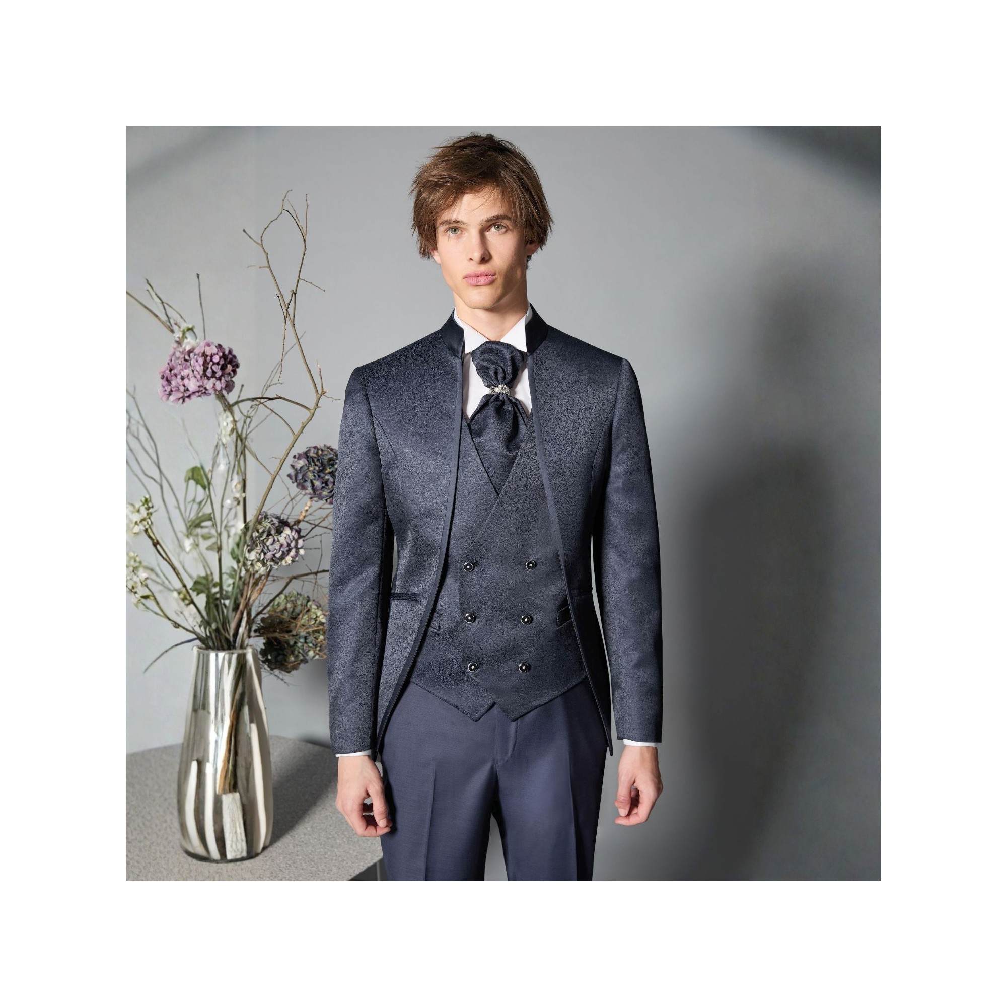 Luigi Bianchi Cerimonia - Abito Damascato monopetto blu coreano per uomo |