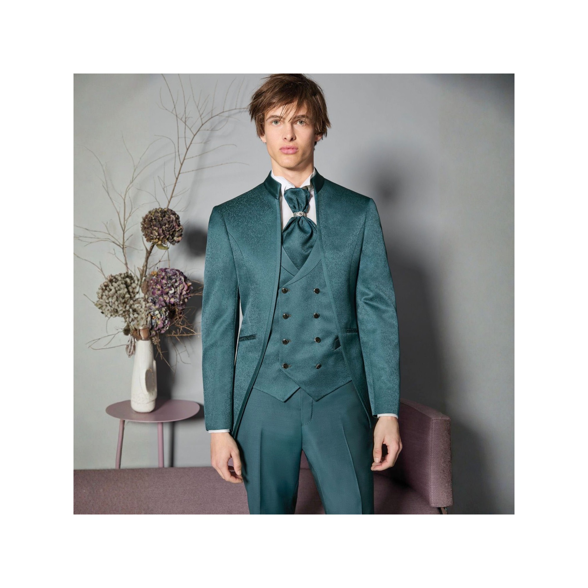Luigi Bianchi Cerimonia - Abito Damascato monopetto verde coreano per uomo |