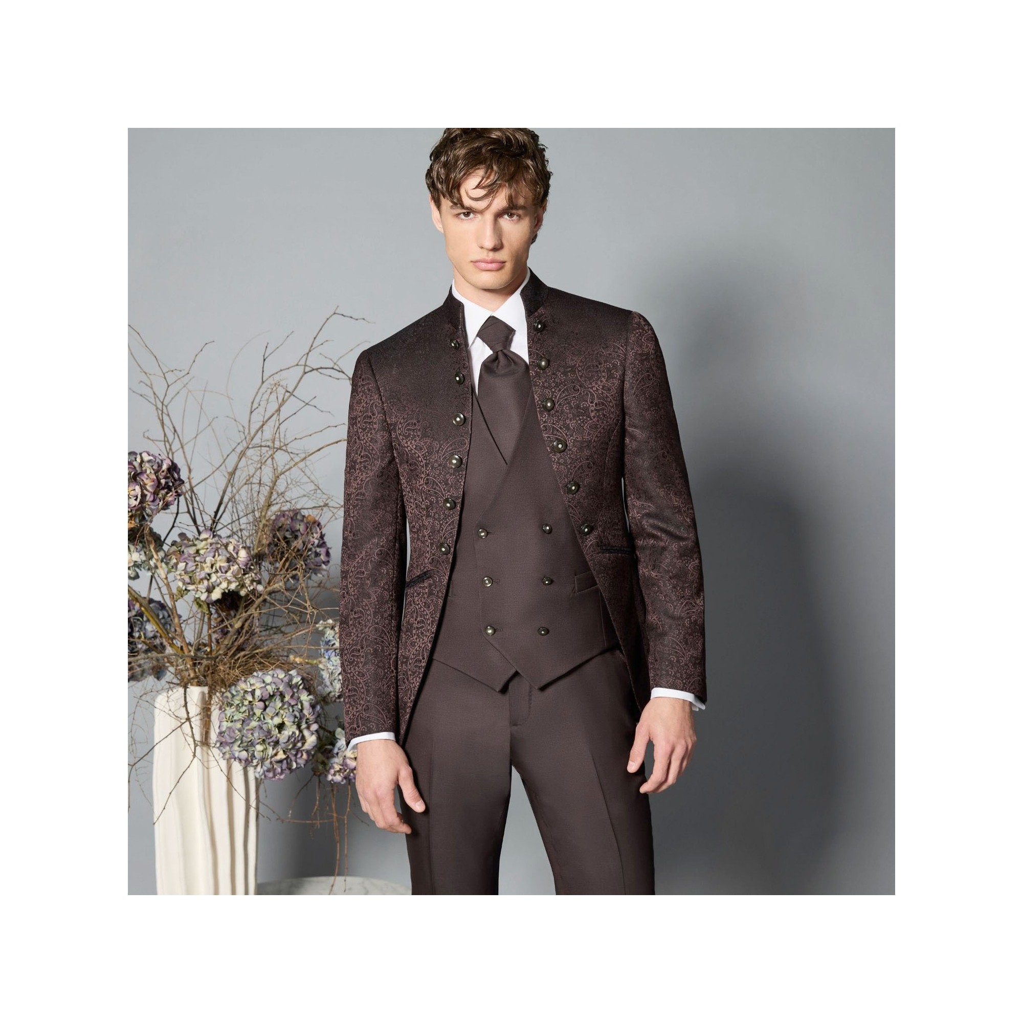 Luigi Bianchi Cerimonia - Abito Damascato monopetto marrone coreano per uomo |