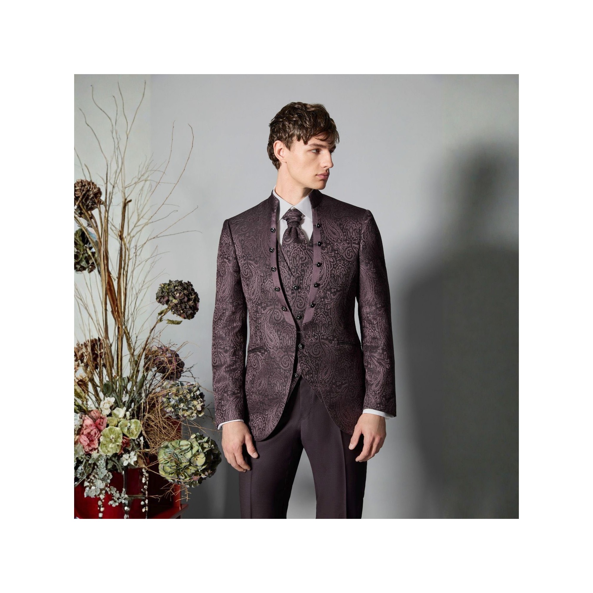 Luigi Bianchi Cerimonia - Abito Damascato monopetto bordeaux coreano per uomo |