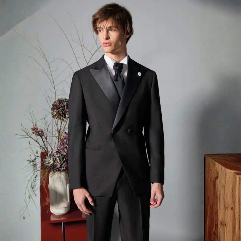 Luigi Bianchi Cerimonia - Abito Smoking doppiopetto nero con rever a lancia per