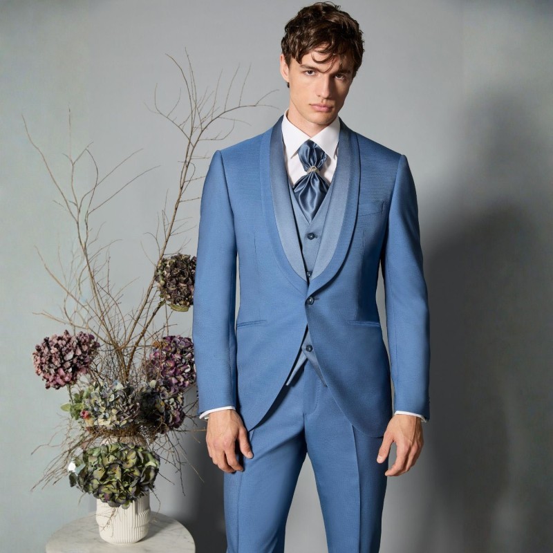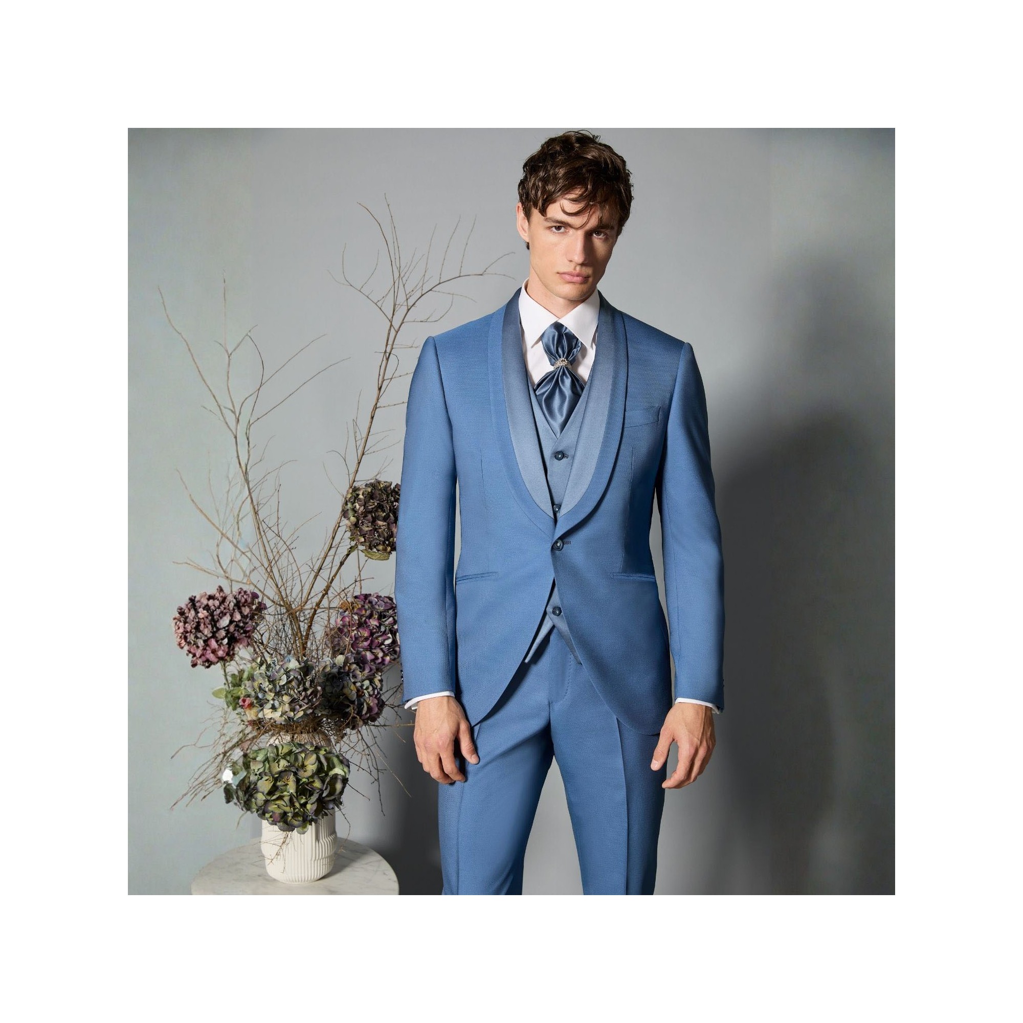 Luigi Bianchi Cerimonia - Abito Smoking monopetto celeste con rever sciallato