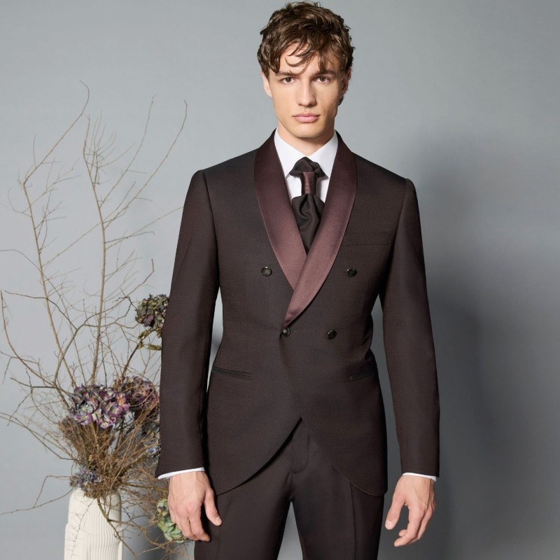 Abito Smoking doppiopetto bordeaux con rever sciallato
