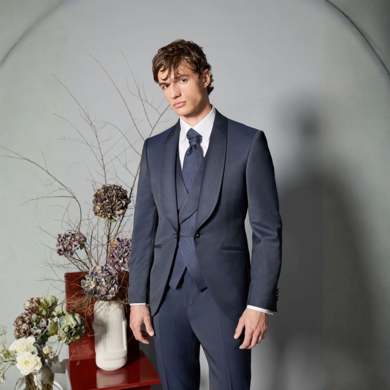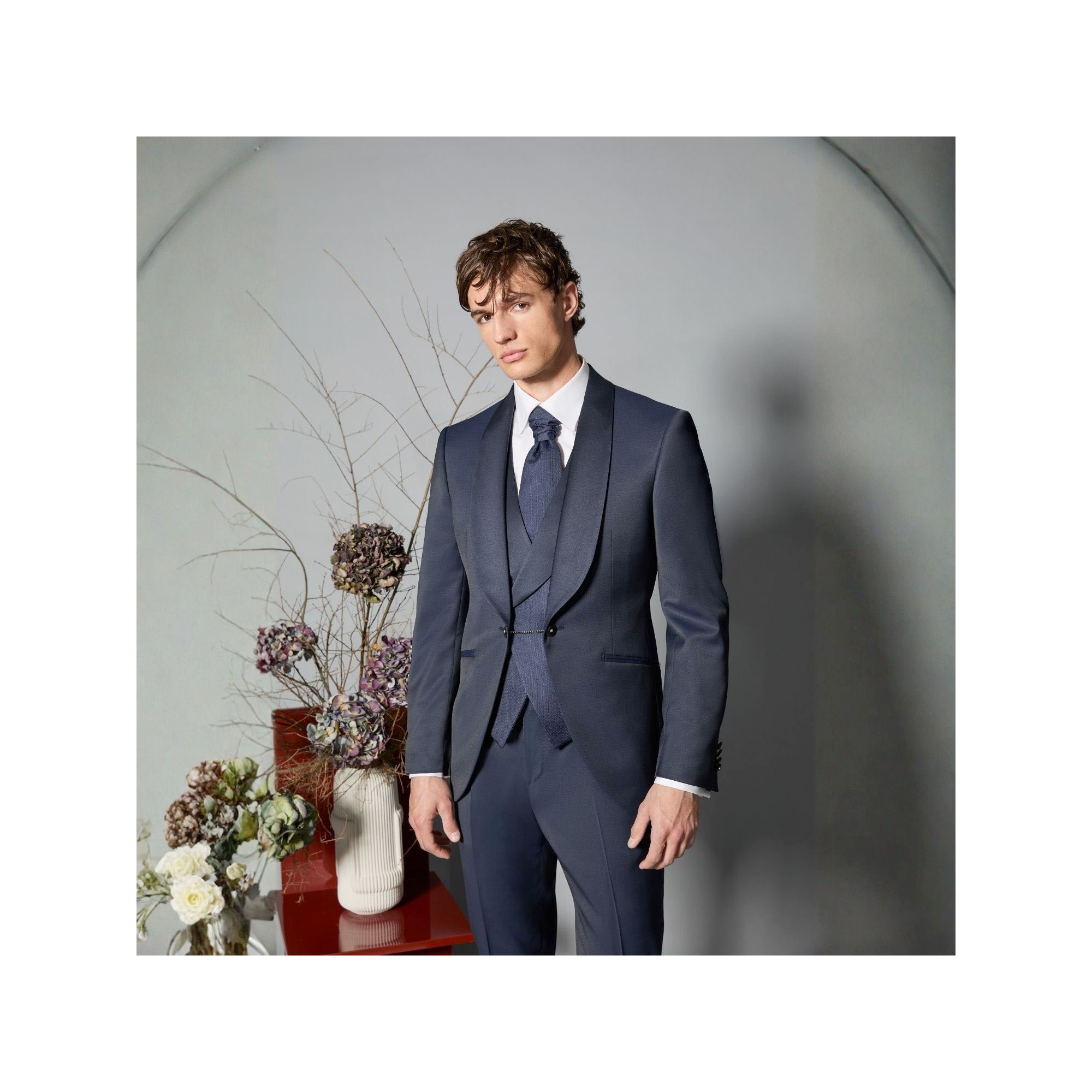 Luigi Bianchi Cerimonia - Abito Smoking monopetto blu con rever sciallato per