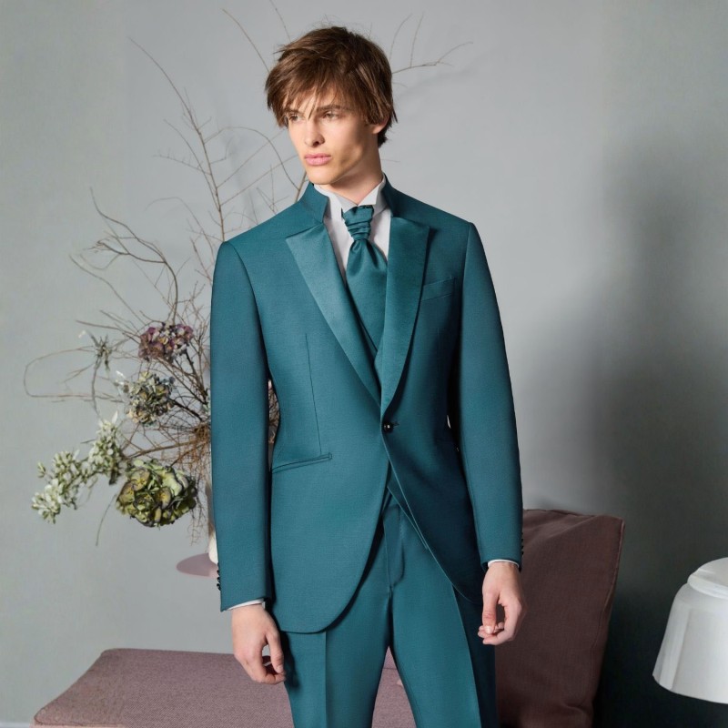 Luigi Bianchi Cerimonia - Abito Smoking monopetto verde con rever coreano per
