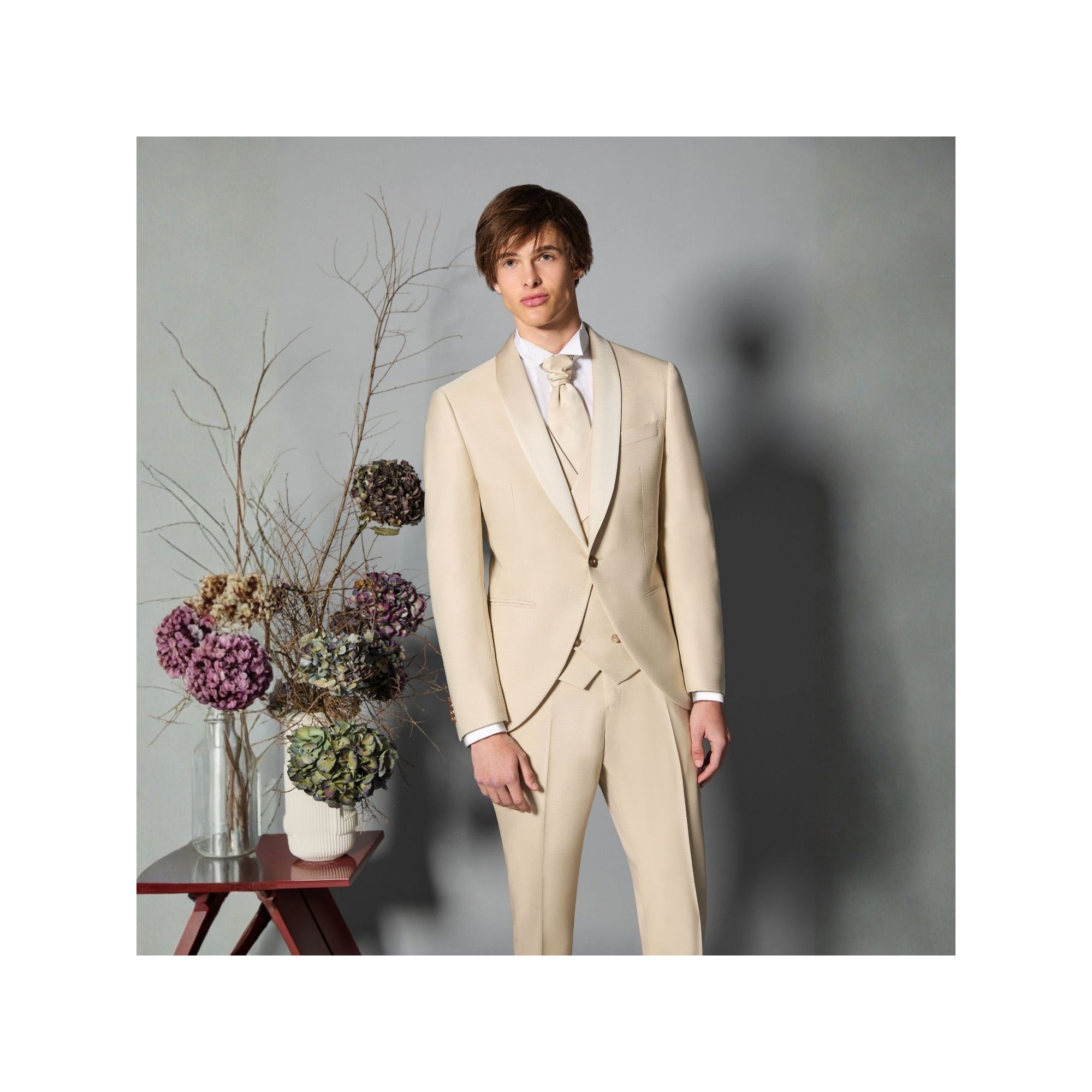 Luigi Bianchi Cerimonia - Abito Smoking monopetto beige con rever sciallato per