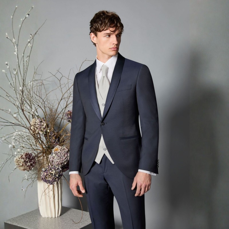 Luigi Bianchi Cerimonia - Abito Smoking monopetto blu con rever sciallato per