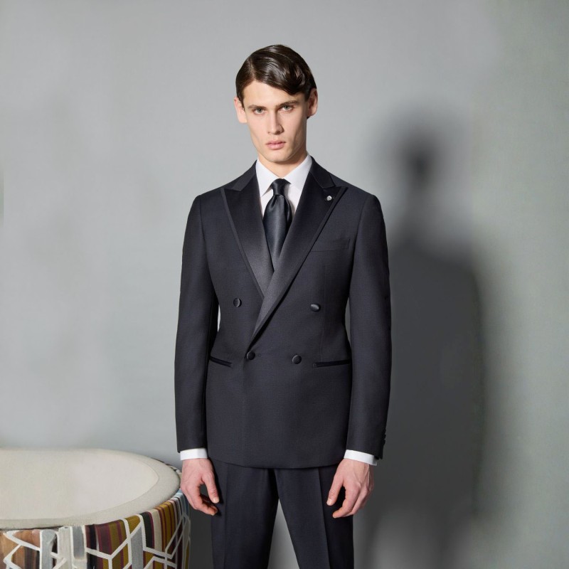 Abito Smoking doppiopetto blu con rever a lancia