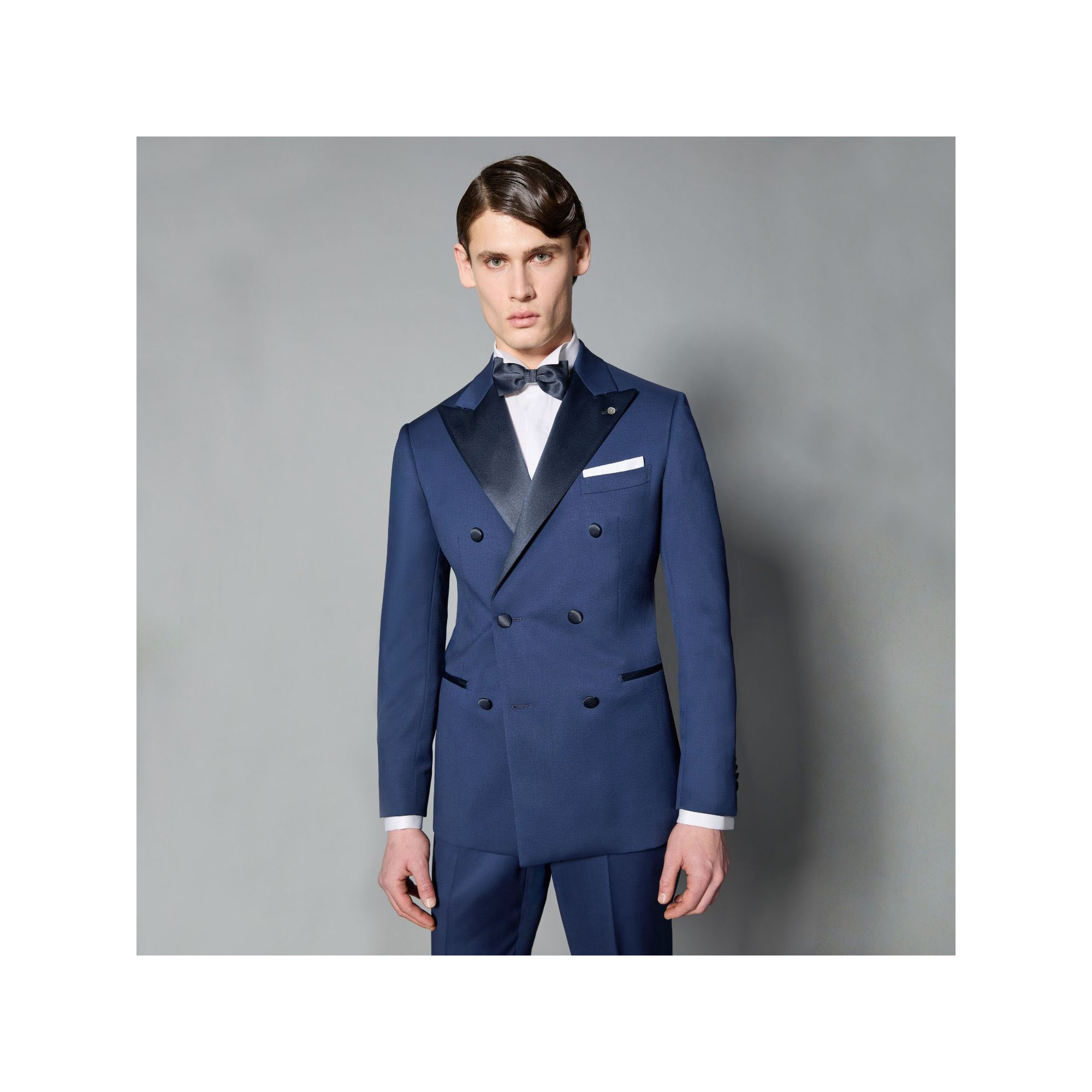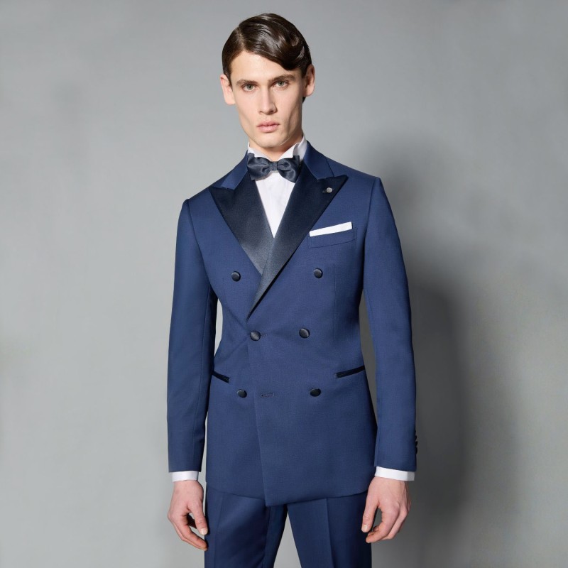 Abito Smoking doppiopetto blu con rever a lancia
