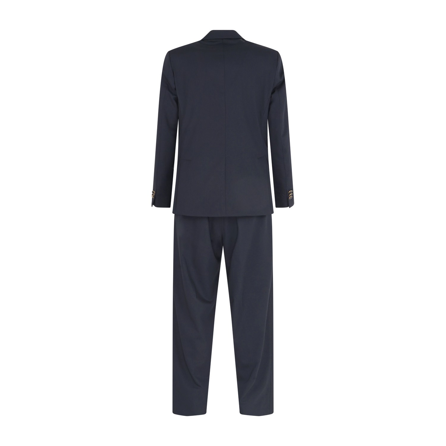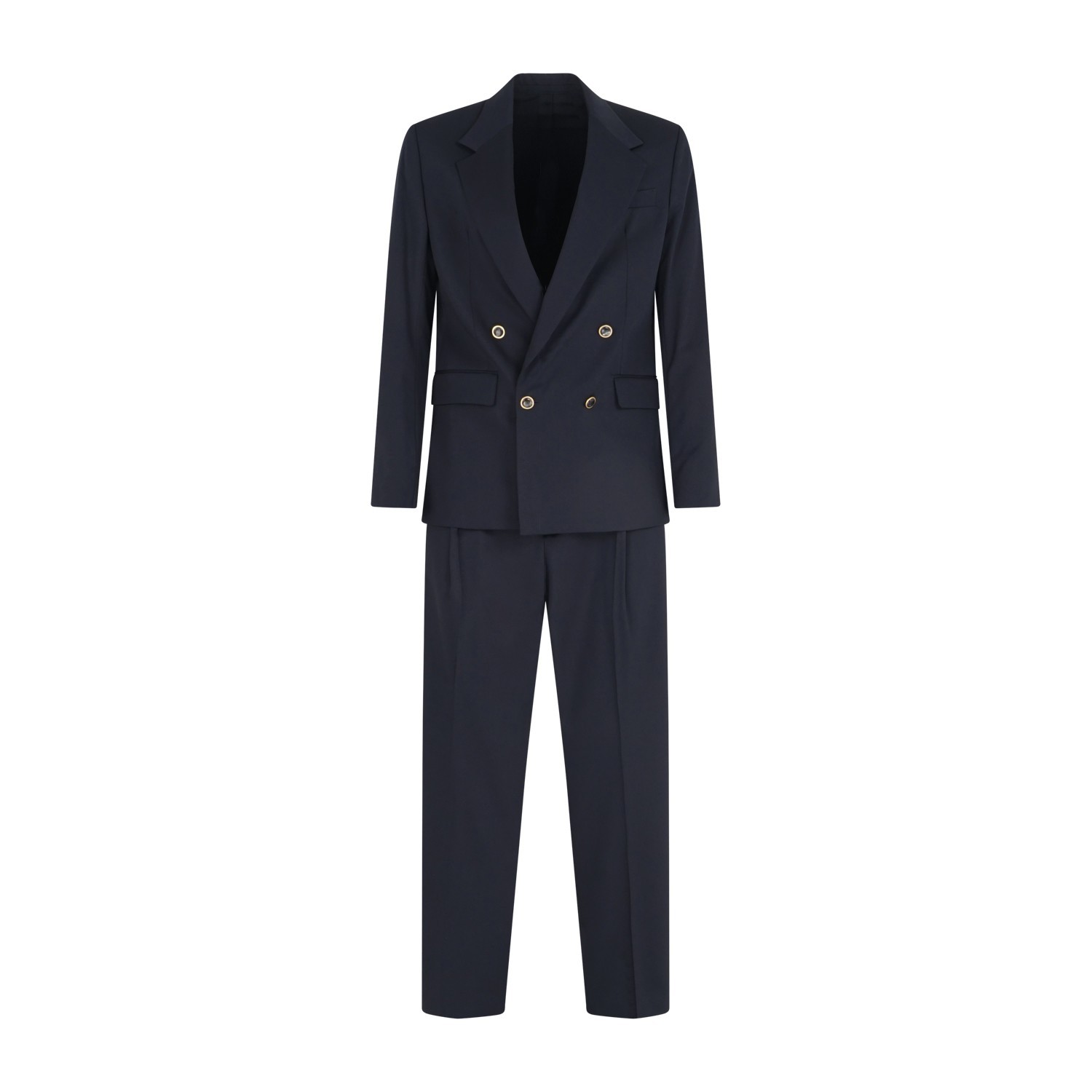 Abito blu doppiopetto basso in frescolana con pantalone palazzo