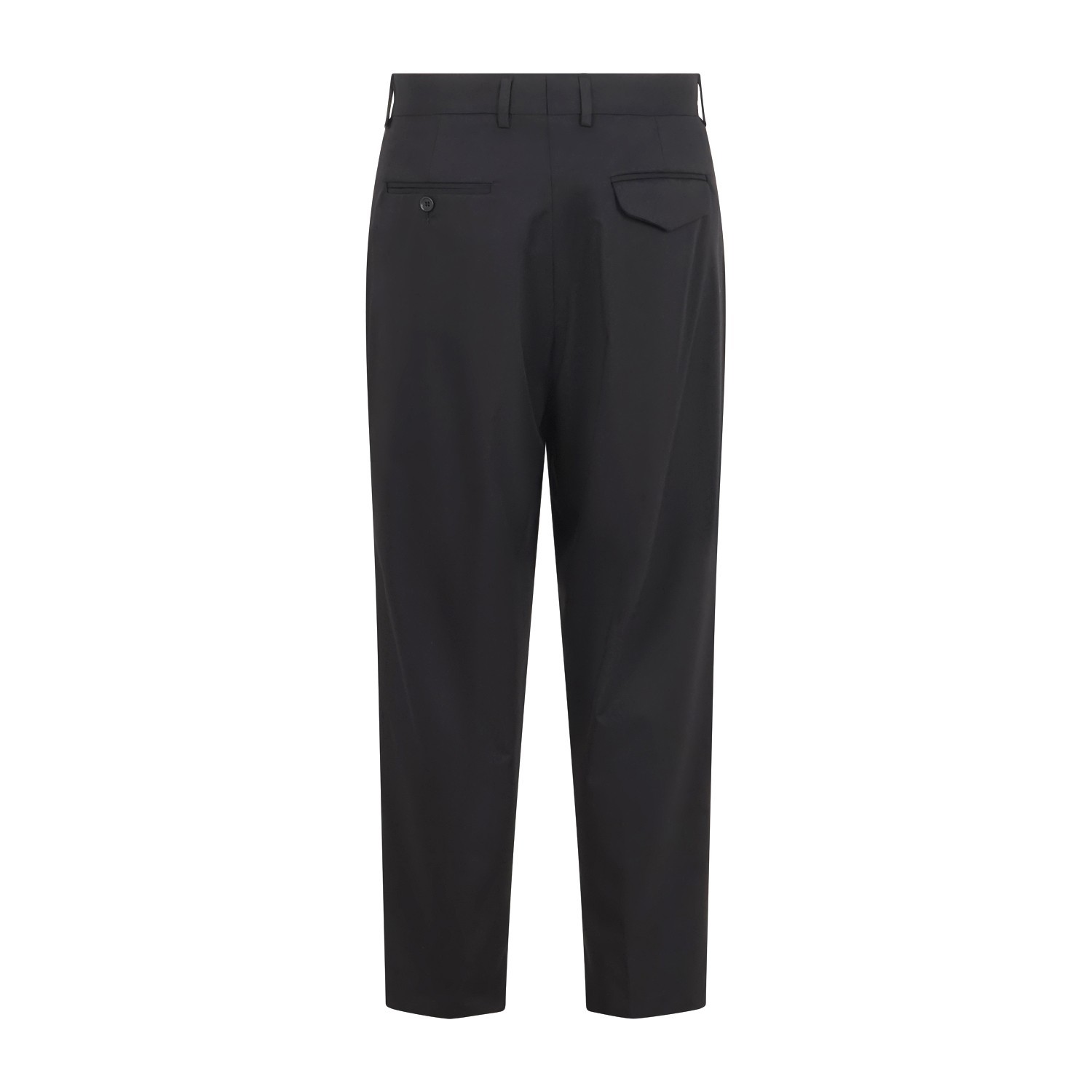 - Due tasche a filetto sul retro con bottoni ed una con patta