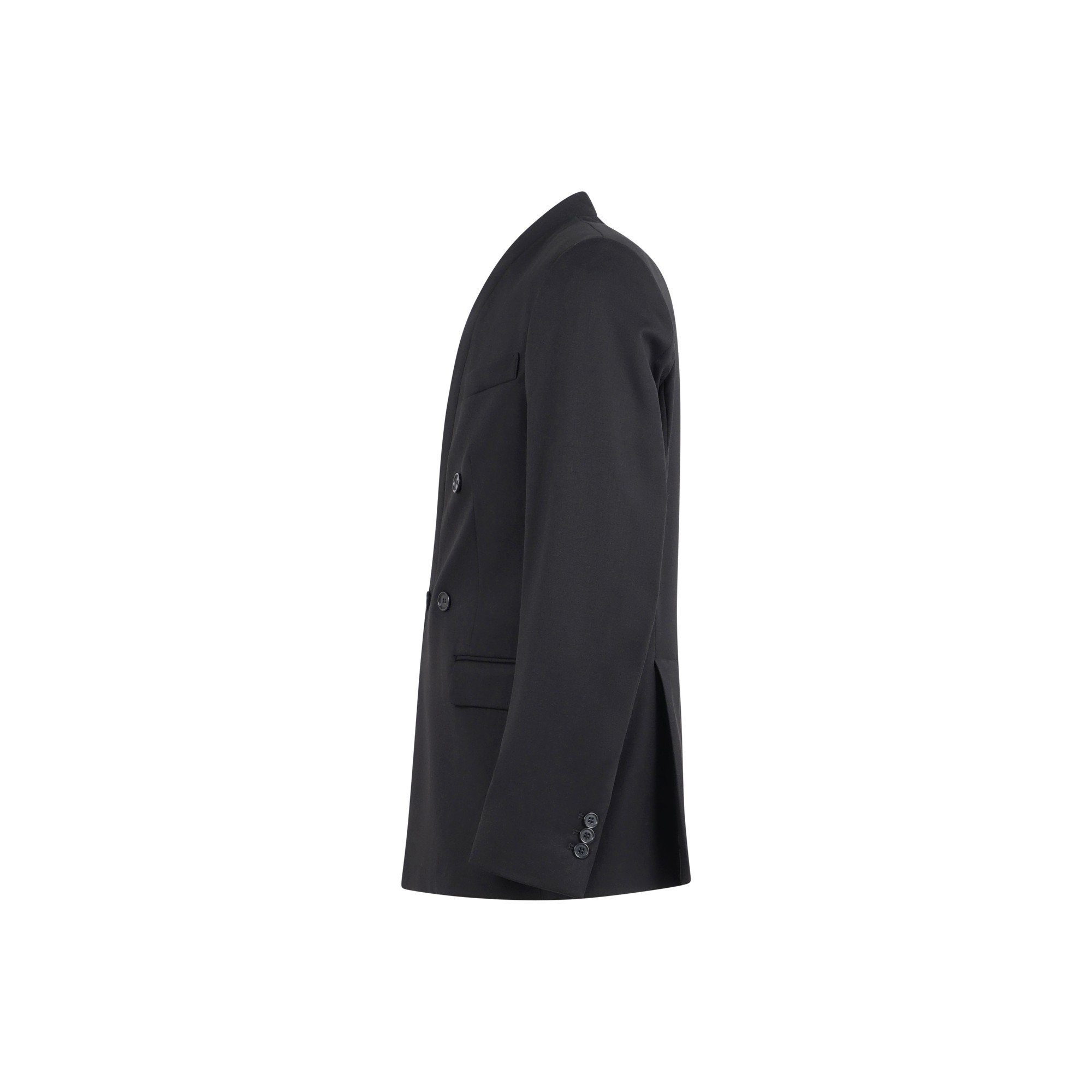 Abito nero doppiopetto con collo coreano con pantalone vita alta