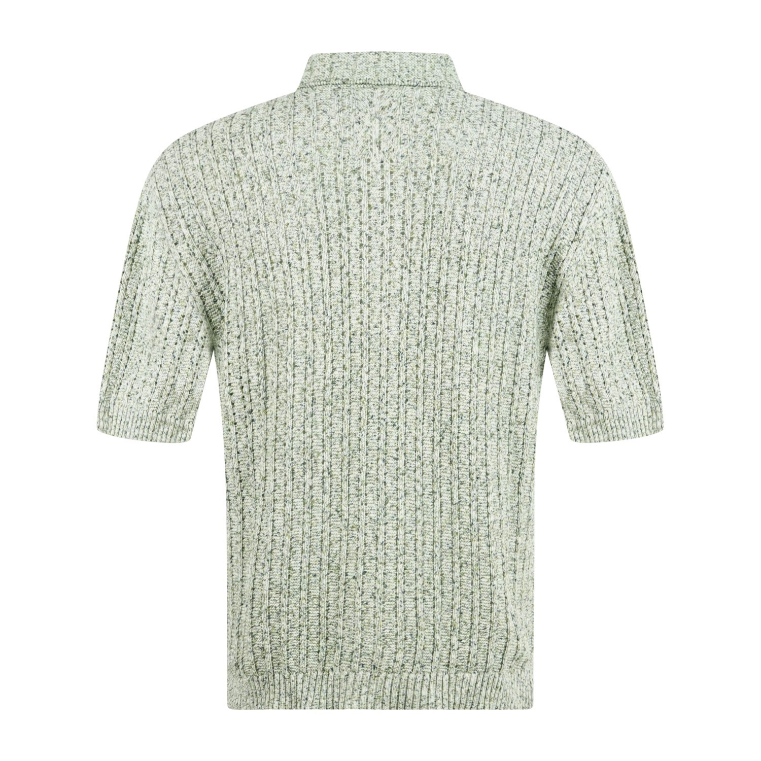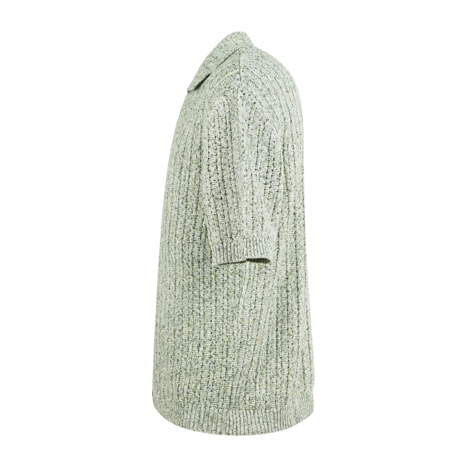 Cardigan polo verde in cotone manica corta con lavorazione a coste