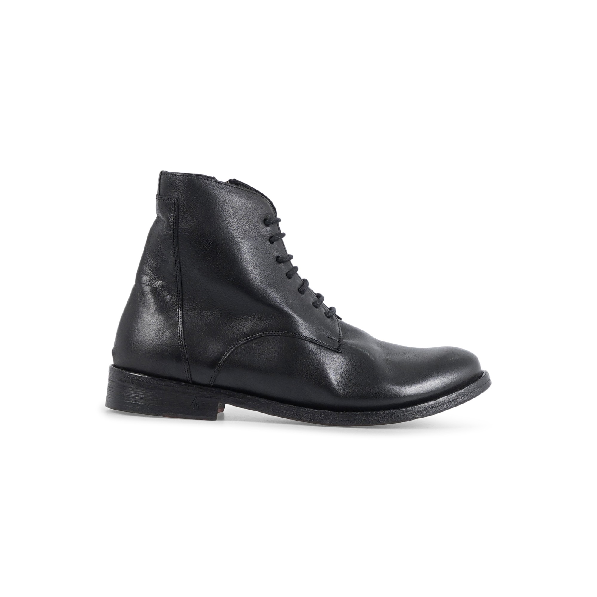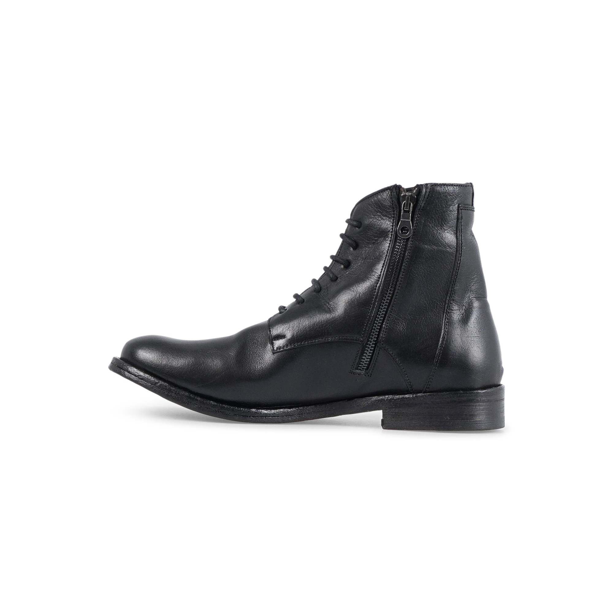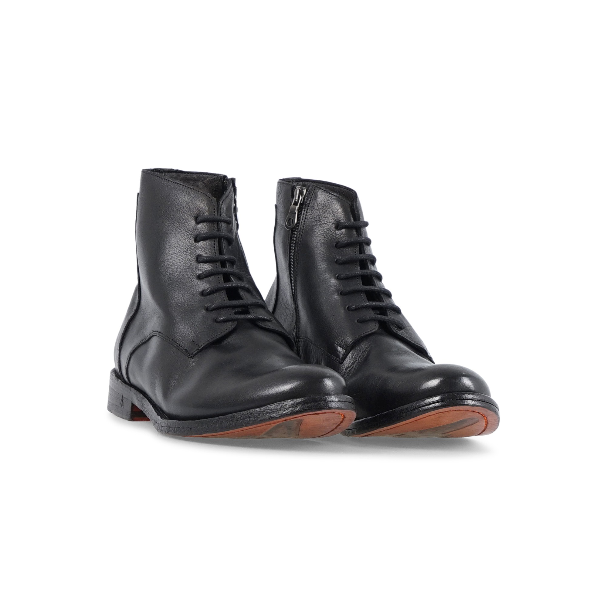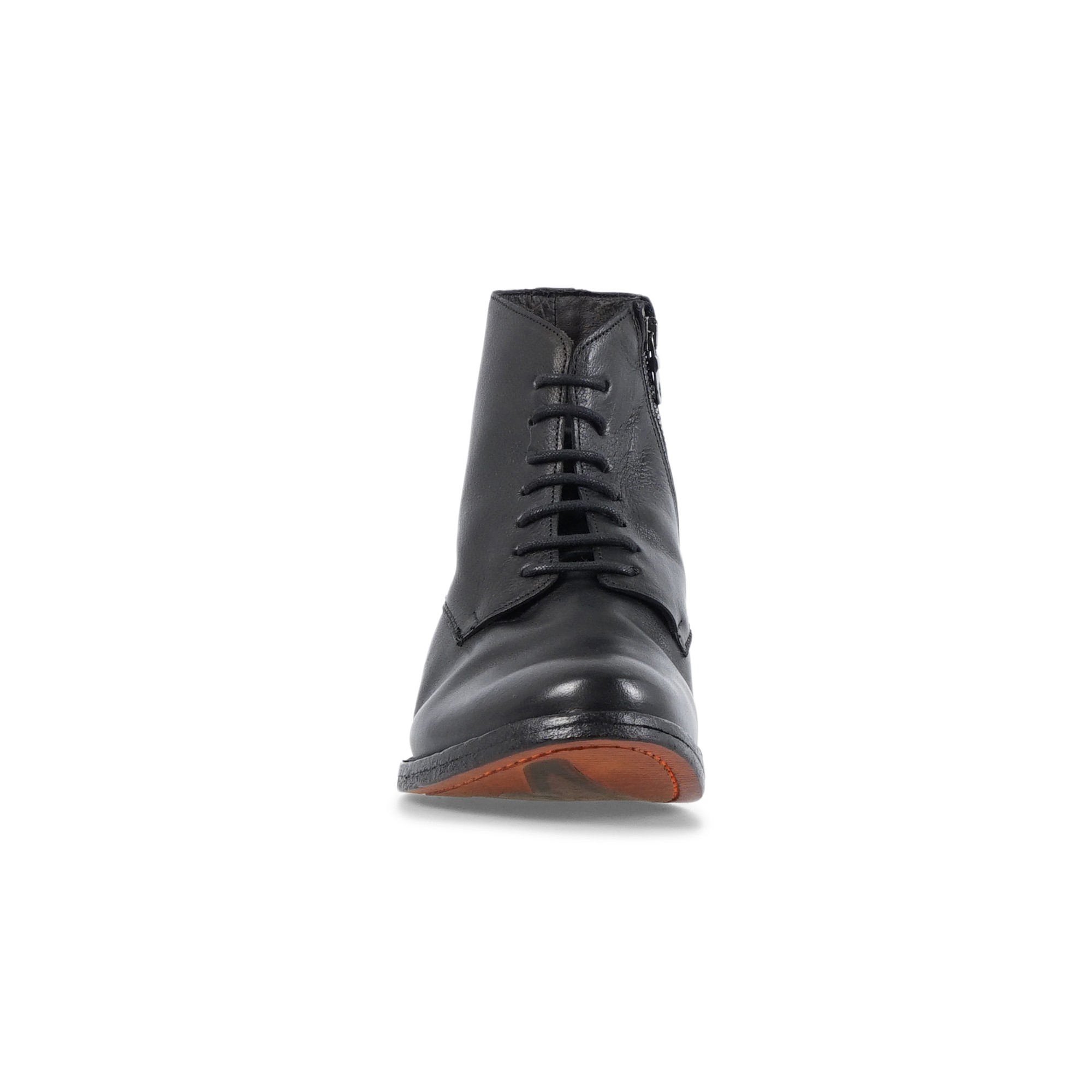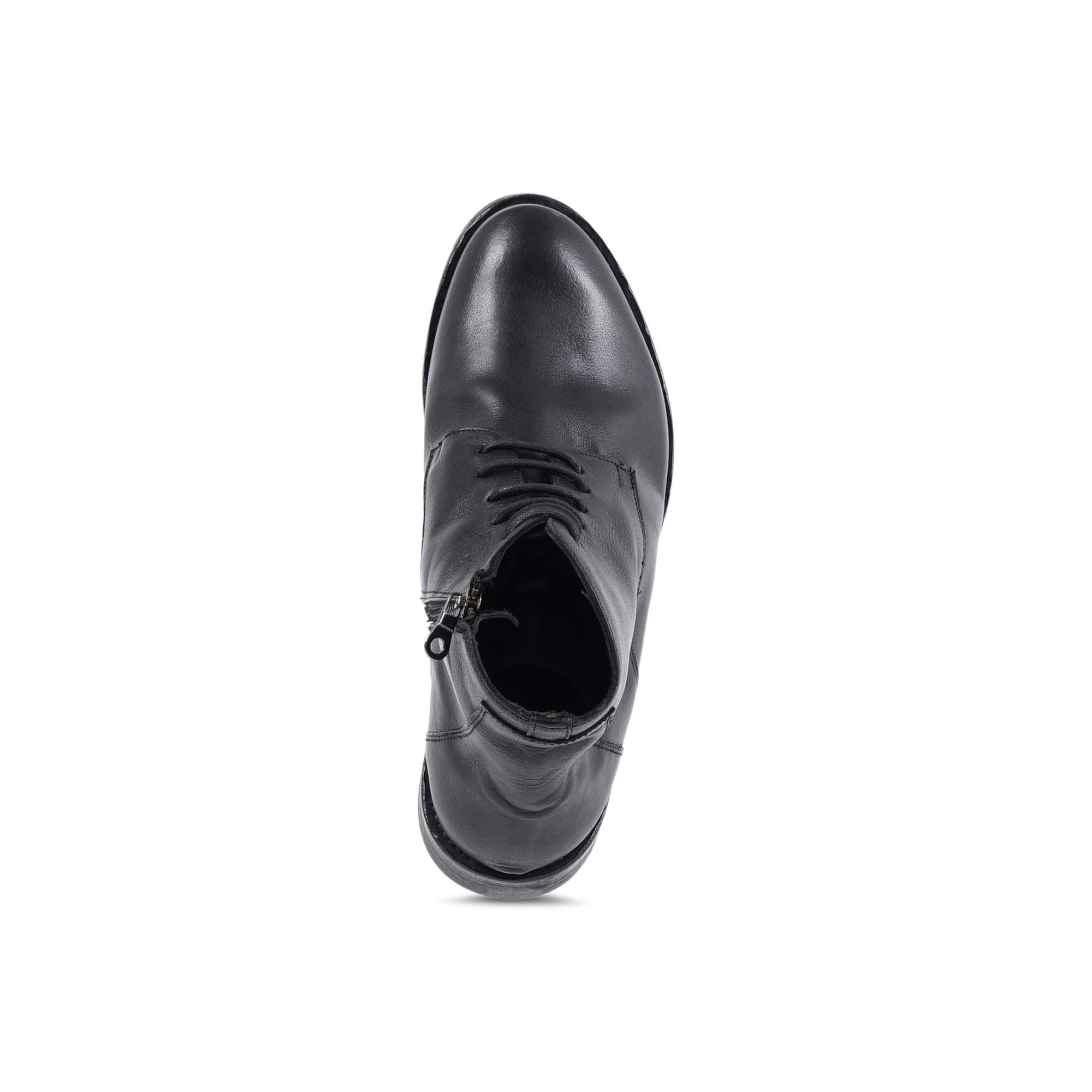 Stivaletto basso nero in pelle con chiusura lacci e zip laterale