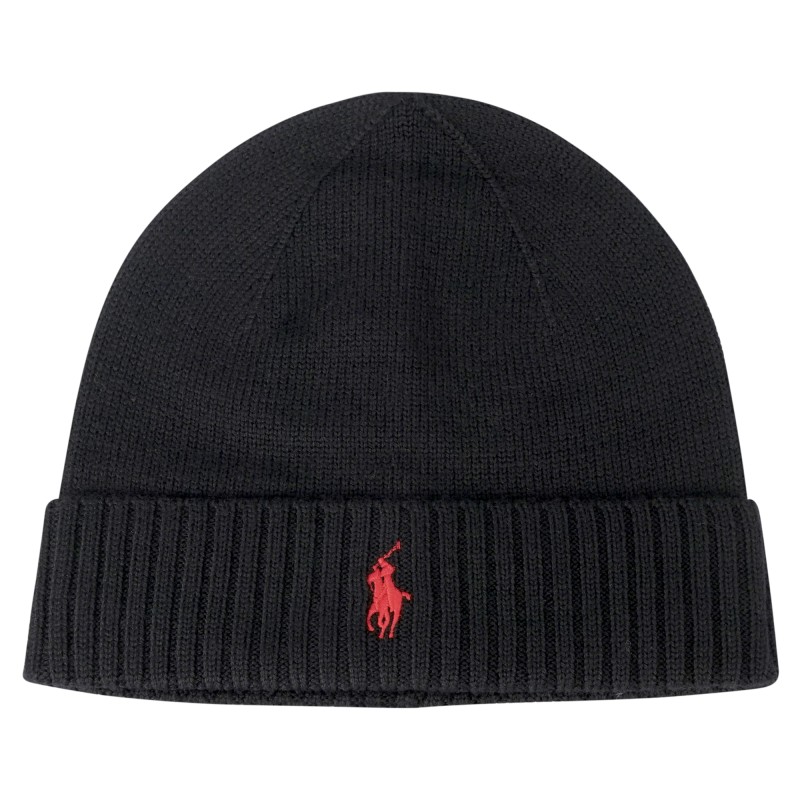Polo Ralph Lauren - Cappello nero in lana merino con logo ricamato sul fronte