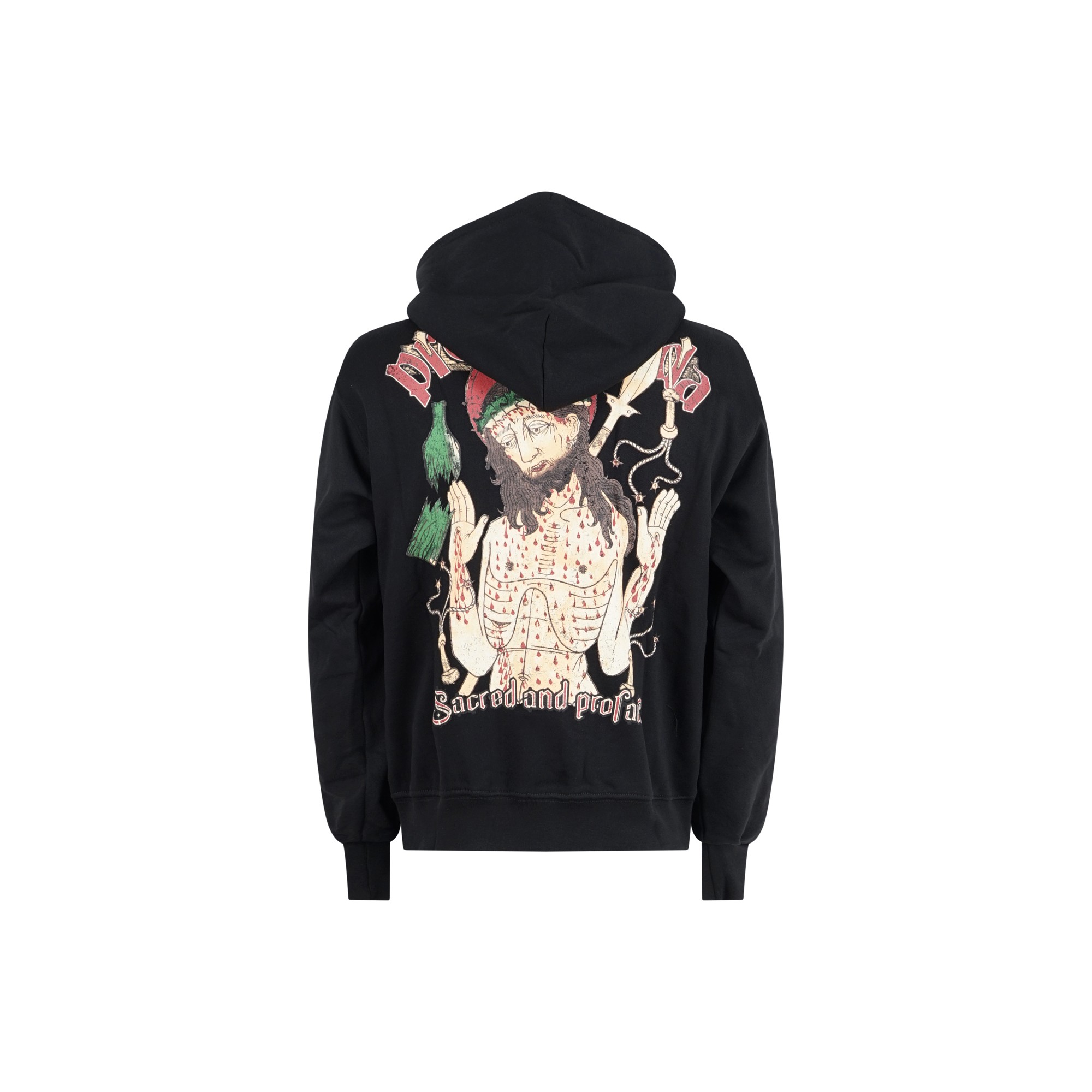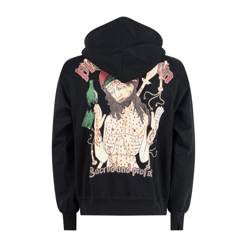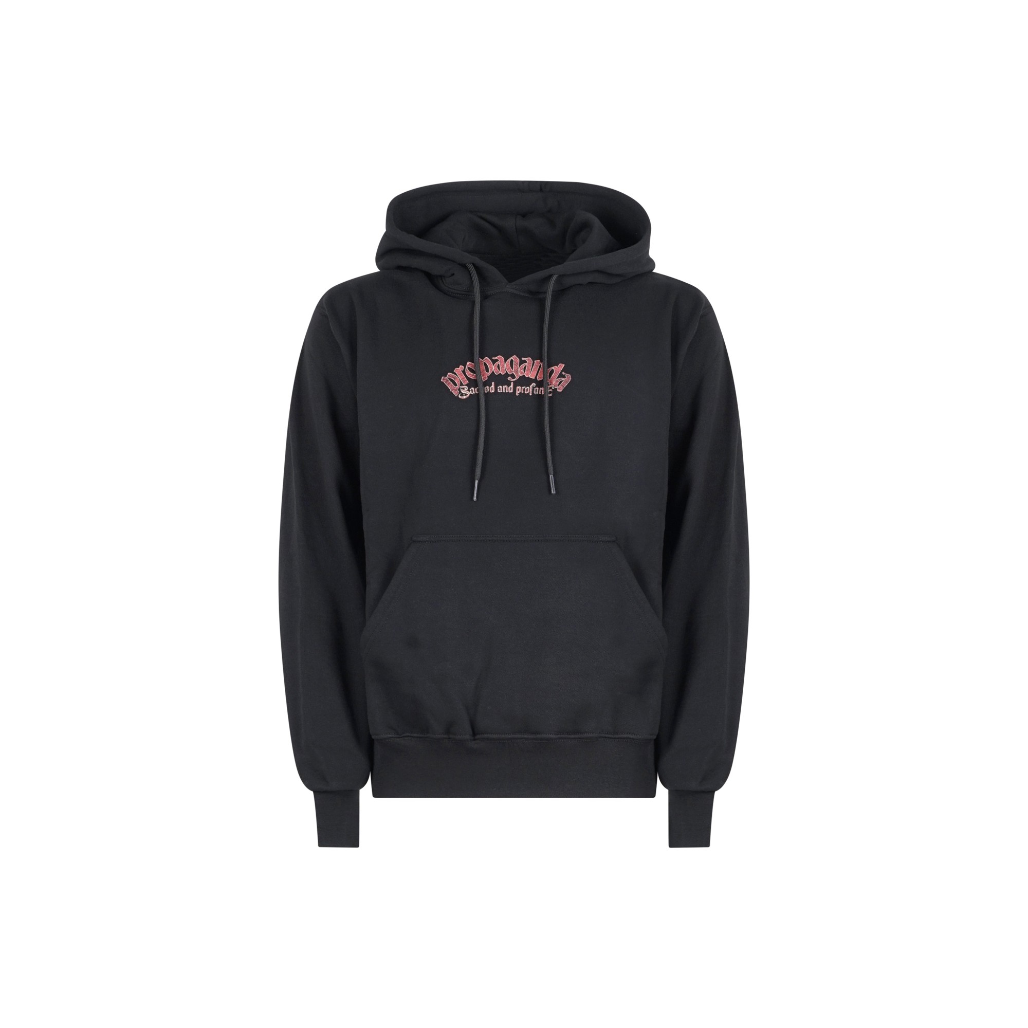 Propaganda - Felpa nera con cappuccio con stampa logo sul fronte e grafica sul
