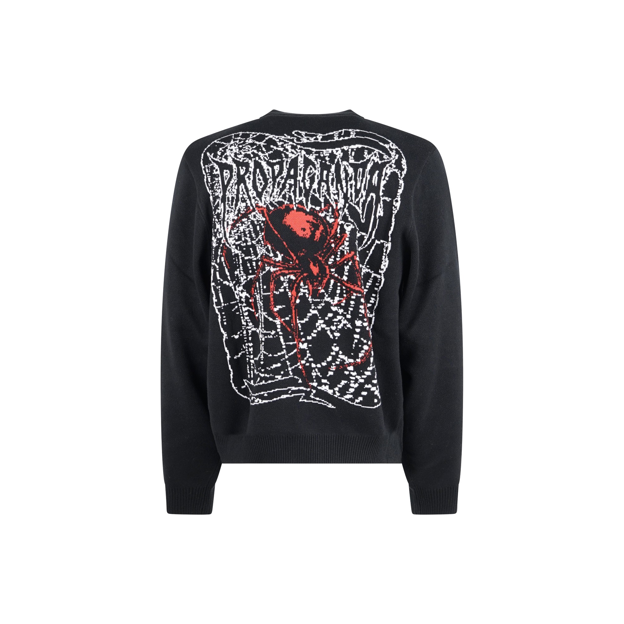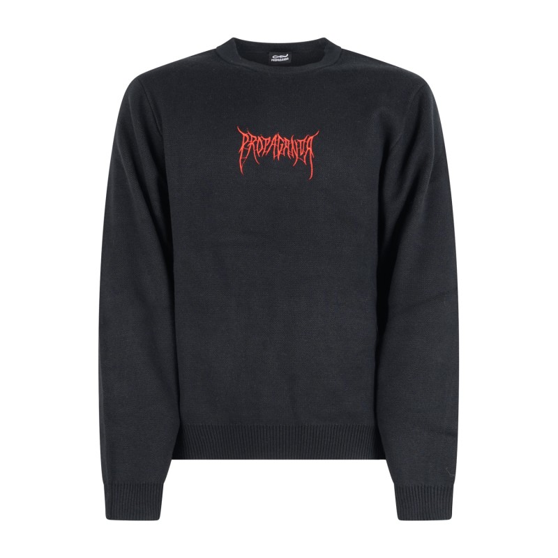 Propaganda - Maglione nero Ribs spider con ricamo logo sul fronte e sul retro